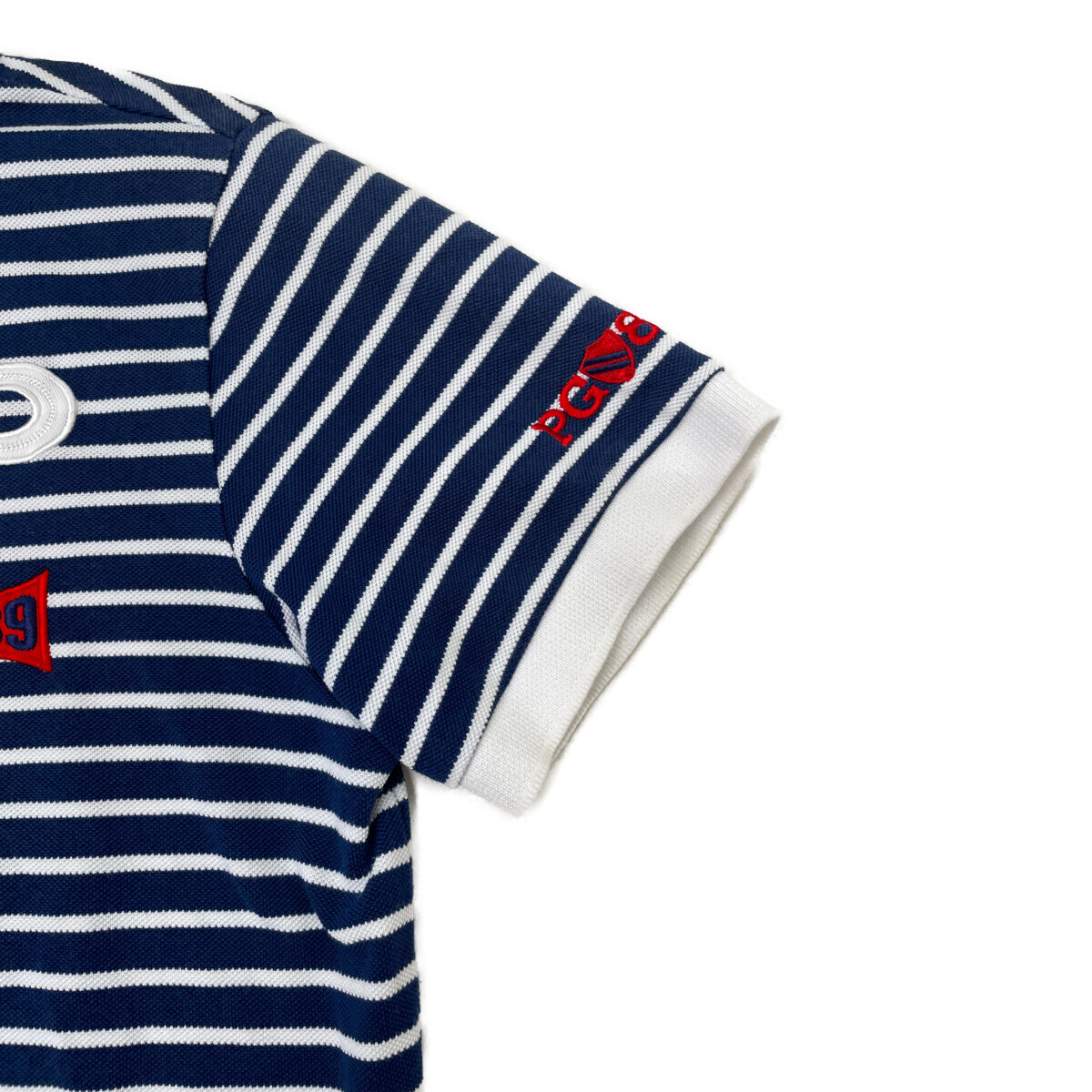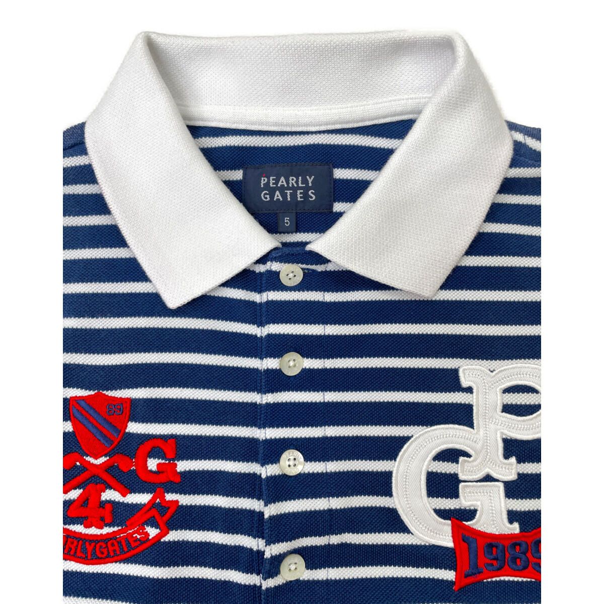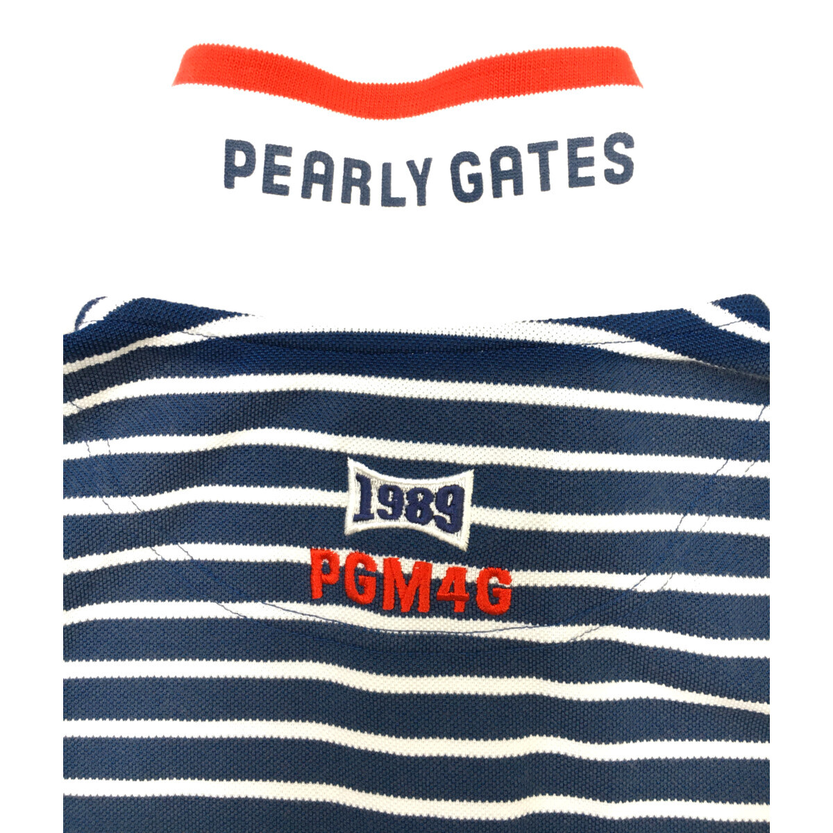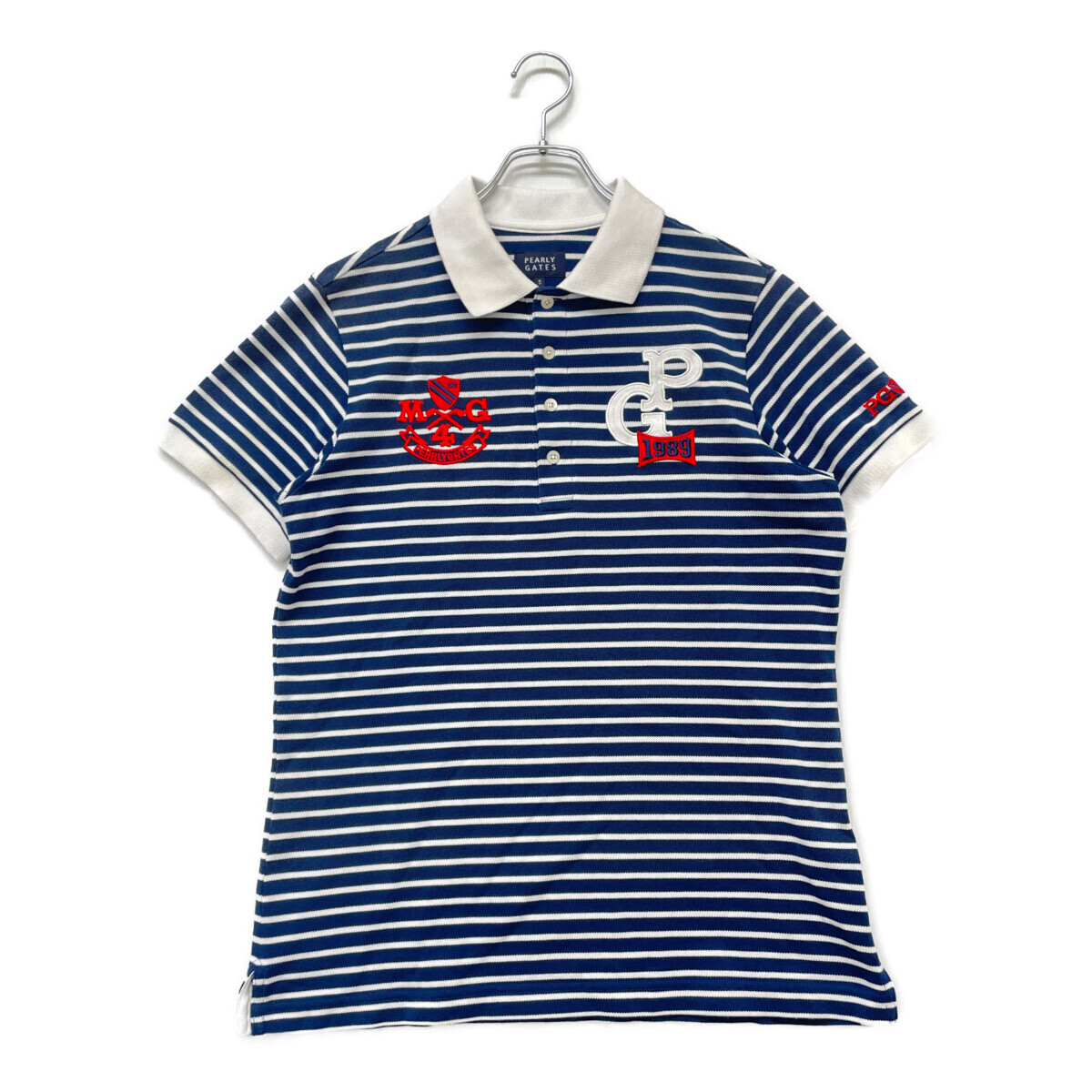 coco 中古【値下げ】 パーリーゲイツ PEARLY GATES メンズ 半袖ポロシャツ 5(L) 紺×白 ボーダー レターパックプラス発送可 93797