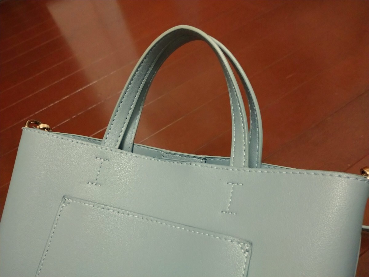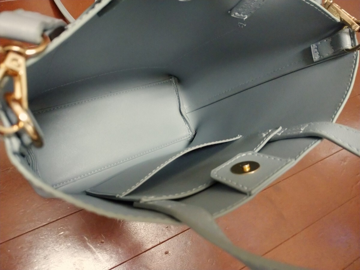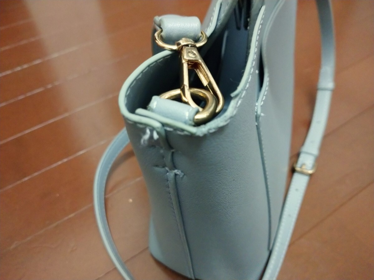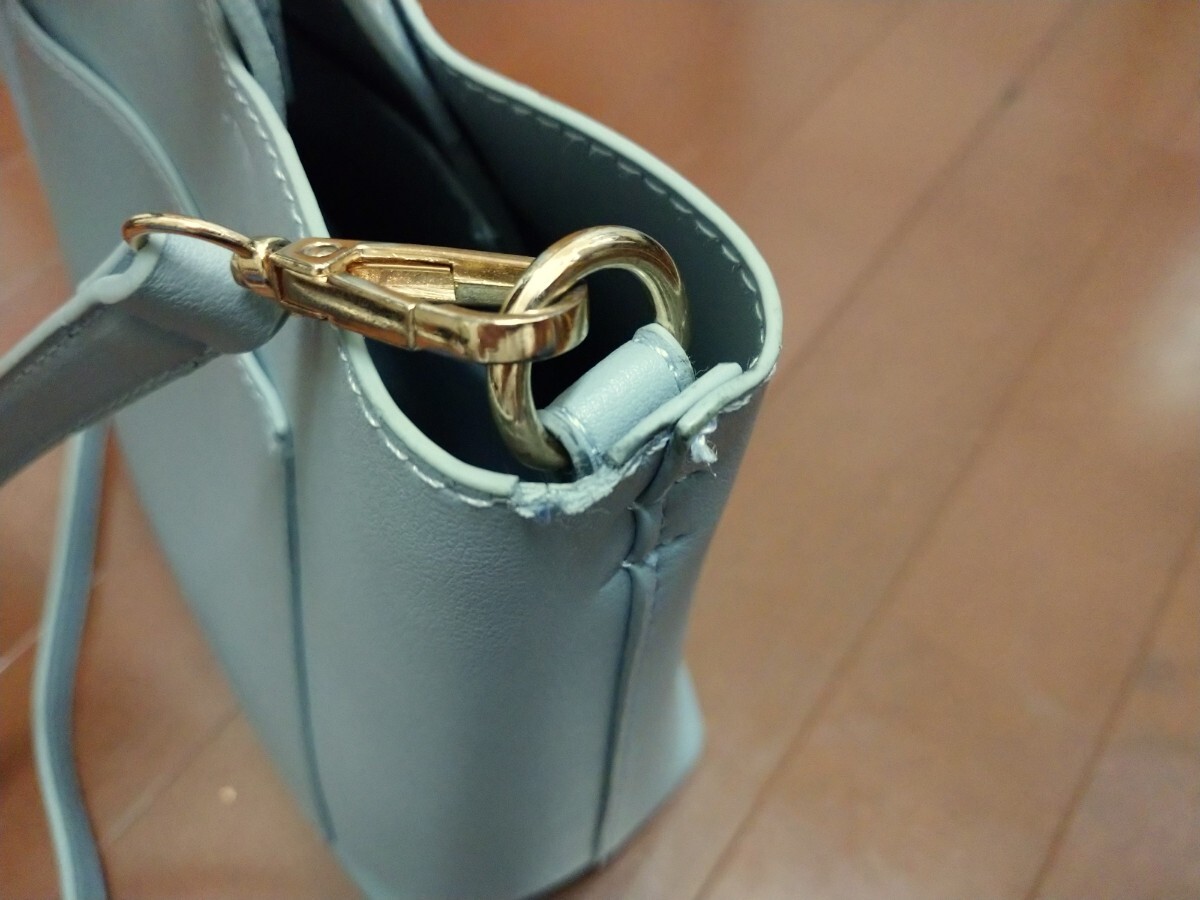 人工皮革のため、年月と使用していくうちに、持ち手は目立たない程度ですが小さなヒビが入り、ベルトがついているかなぐり捨て部分に擦れる部分にはキズがあります。遠目で見ると、キズはわかりにくいです。画像をご確認ください。