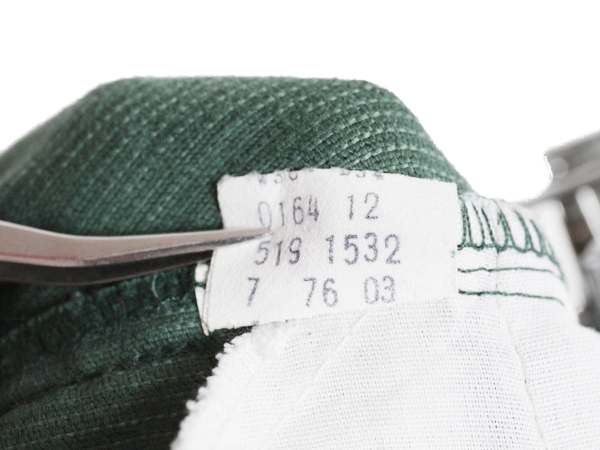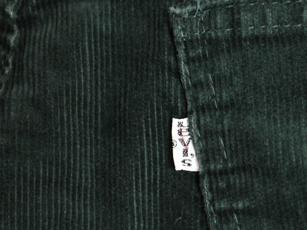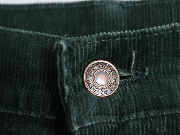70年代のヴィンテージ リーバイスの 519 1532 コーデュロイパンツです。 綺麗なスリムストレートで人気の519モデル 内タグから1976年製 トップボタン裏刻印3 白タブ MADE IN USA (アメリカ製 表記なし) 素材は、履き心地抜群の細畝コーデュロイ 年間を通して履いて頂ける素材です。 フロントはジッパーフライ、42 TALON タロンジップ を使用 コーディネートの良いアクセントになるダークグリーン ヴィンテージリーバイス独特のカラーも魅力的です。 年々、希少価値の増すモデル アメリカでもまったく見かけなくなりました 今後ますます、入手困難になる商品です。 |