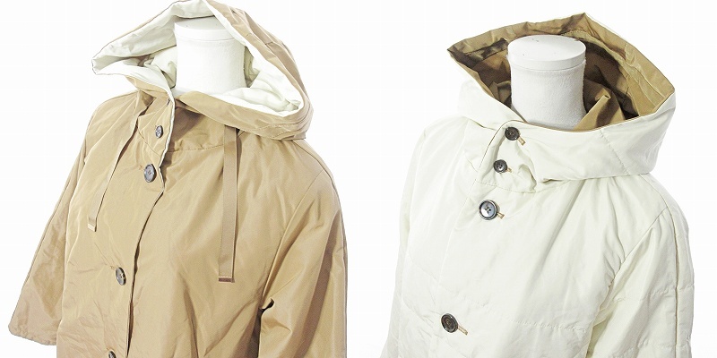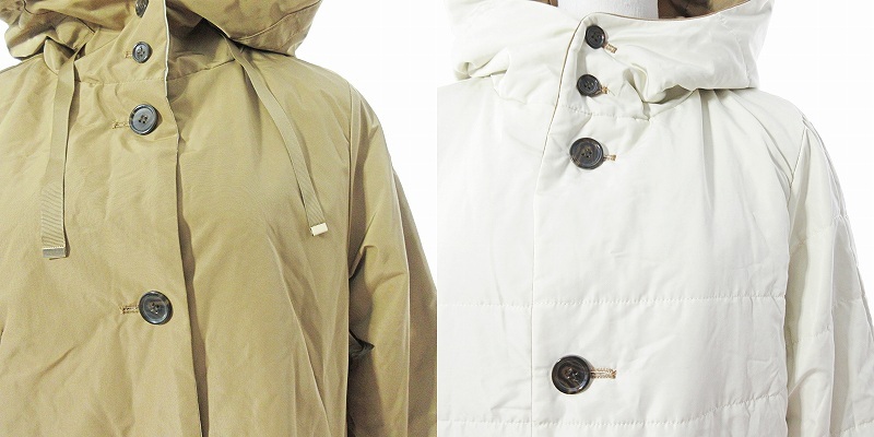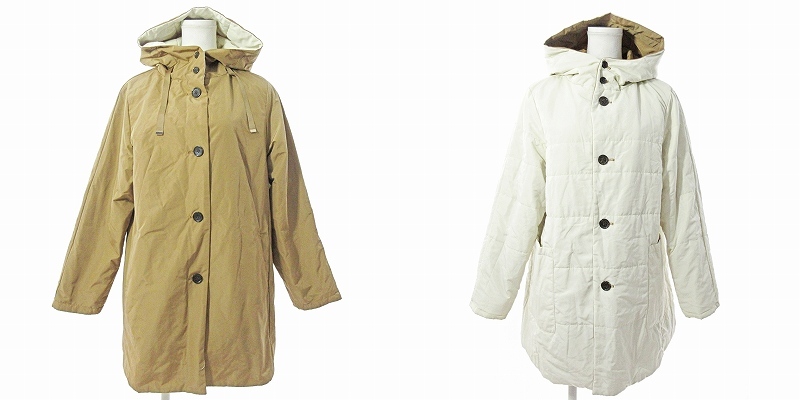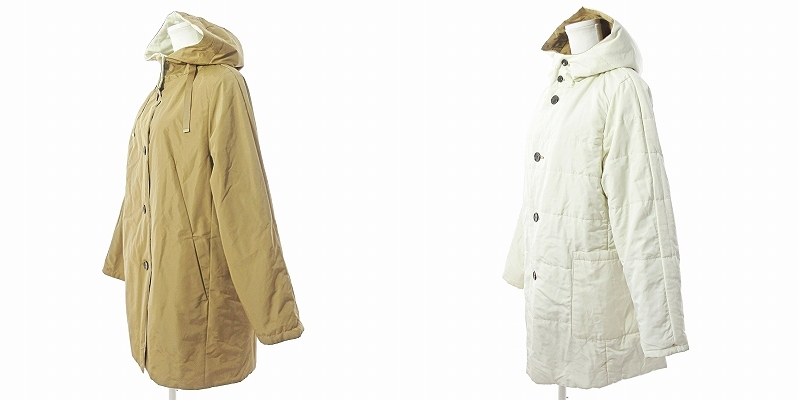 ドゥクラッセ DoCLASSE リバーシブル 中綿 フーデッドコート ジャケット L 茶 ブラウン オフホワイト 0417 IBO70 レディース