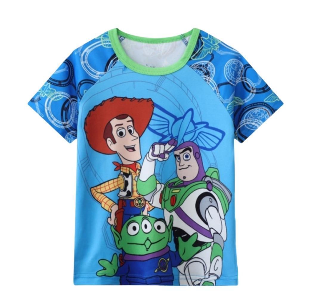 トイストーリーのキャラクター(ウッディ、バズ・ライトイヤー、リトルグリーンメン)がデザインされた可愛いパジャマです