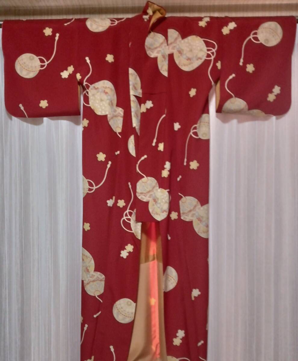 | 着物サイズ 身丈:約165㎝ 袖丈:約50㎝ 裄:約65.5㎝ ポリエステル100%