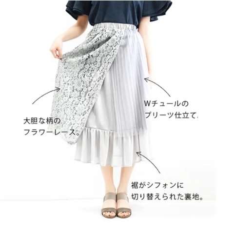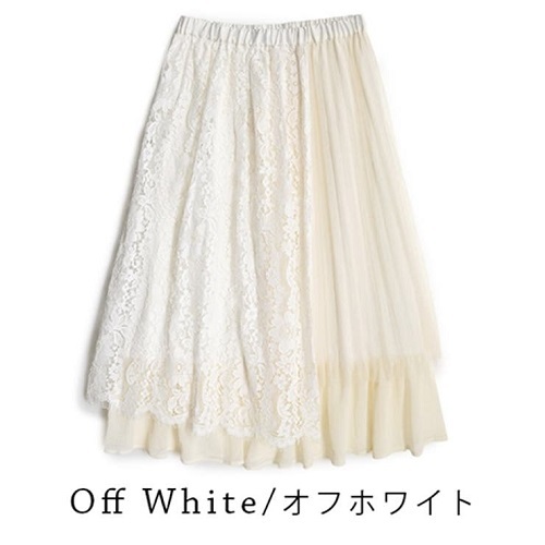 Wチュール・フラワーレース・シフォンの3種の異素材MIXスカート。