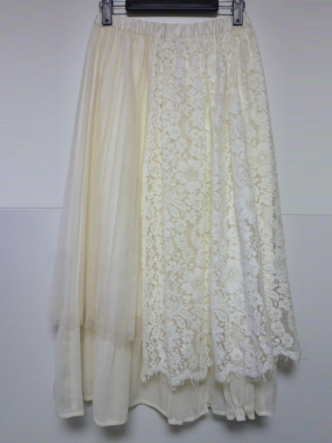 ☆ w closet ダブルクローゼット チュール&レース&シフォン 異素材MIXスカート SIZE:F オフホワイト ☆