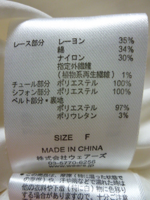 レース部分:レース35% 綿34% ナイロン30% 指定外繊維1%