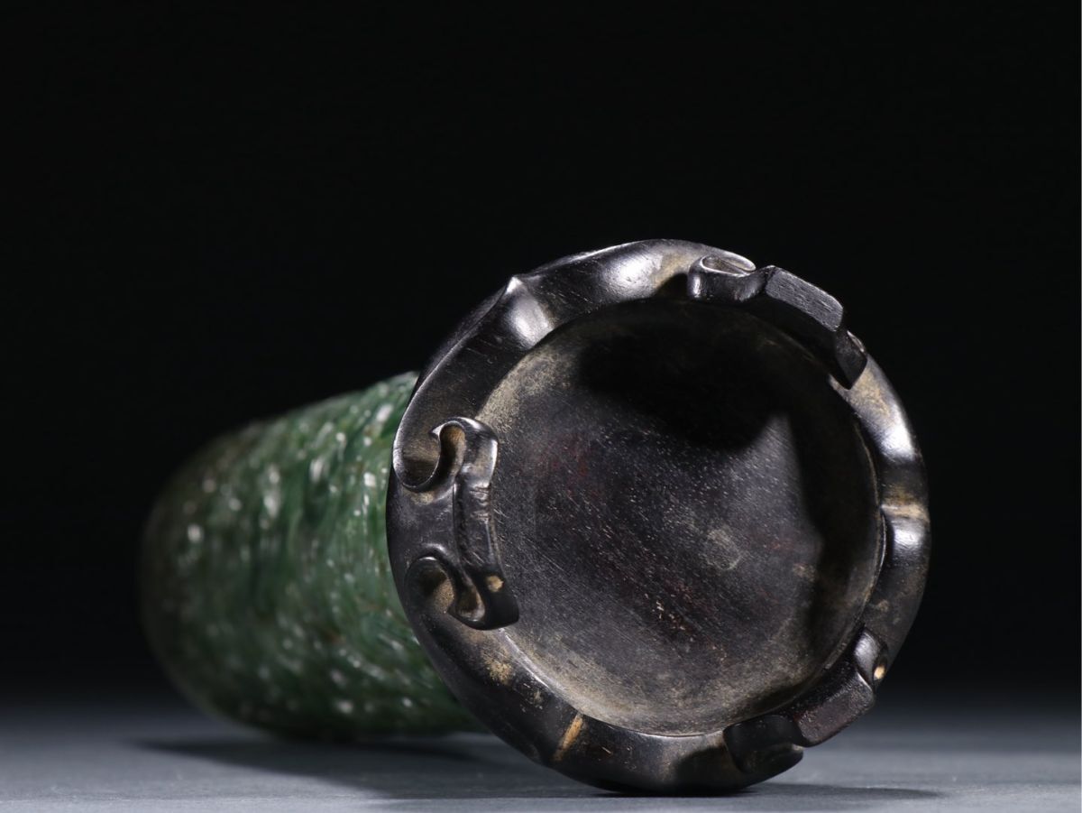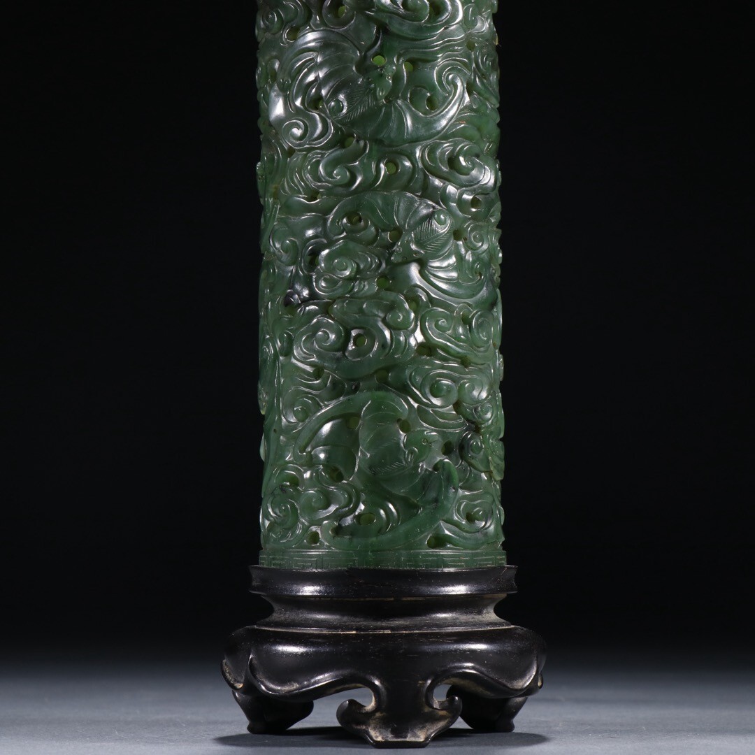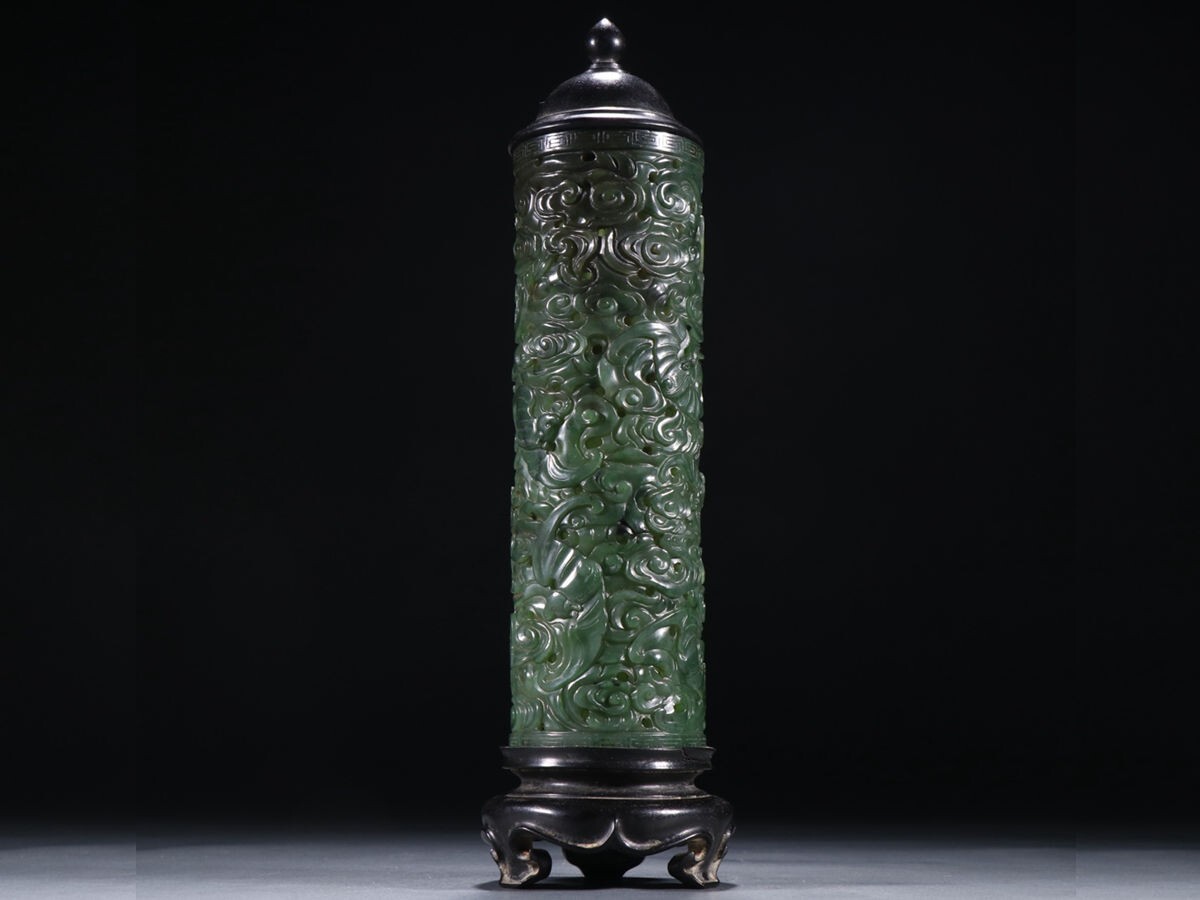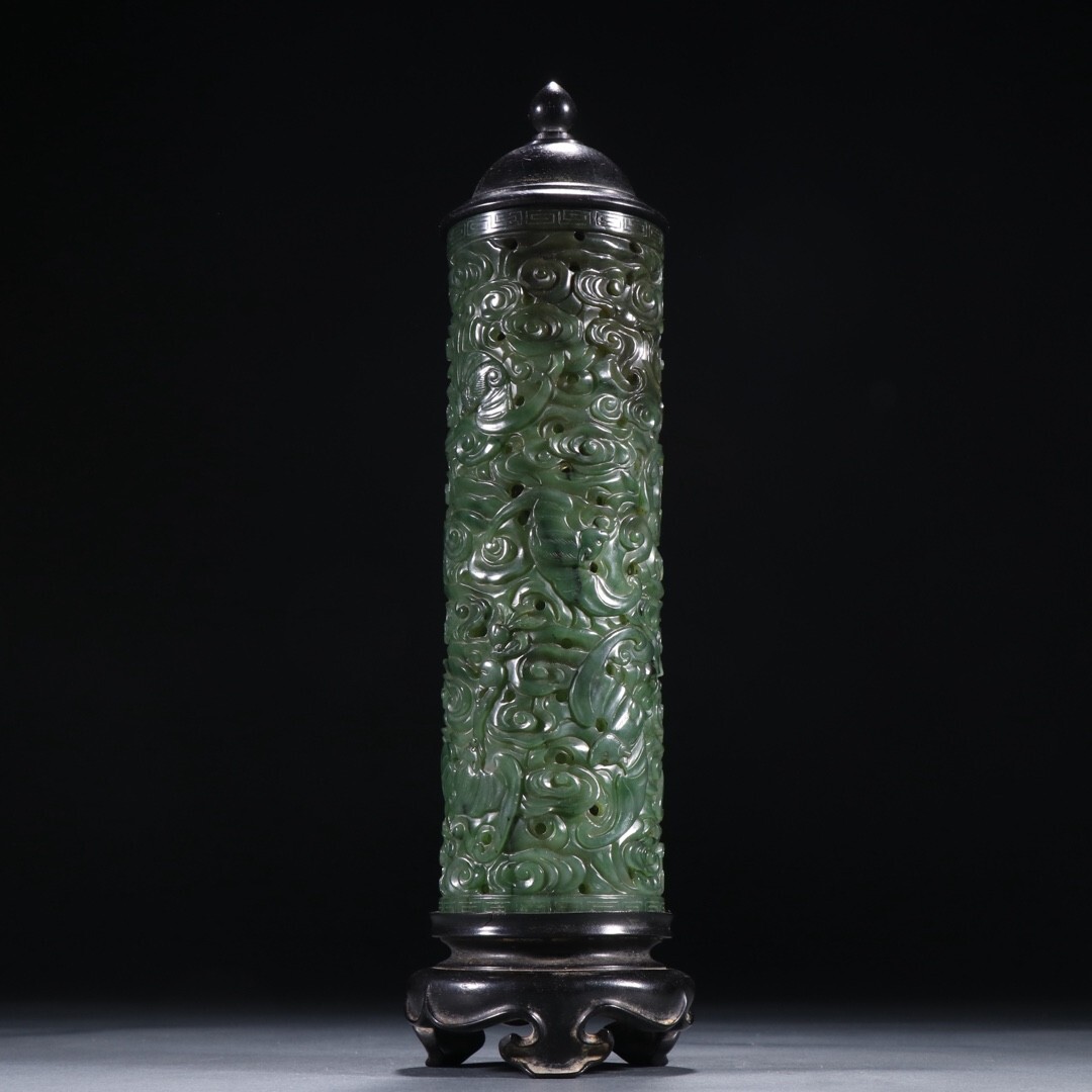 【瓏】和田玉 碧玉彫 蝙蝠祥雲紋香薰 清時代 極細工 手彫り 置物擺件 中国古賞物 古美術 蔵出