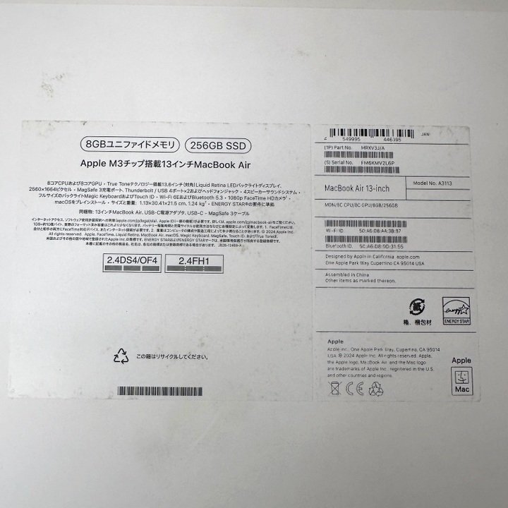 商品名 | 【Apple/アップル】M3チップ搭載13インチMacBook Air 256GB MRXV3J/A ミッドナイト 2024年発売モデル/td0110 | ||