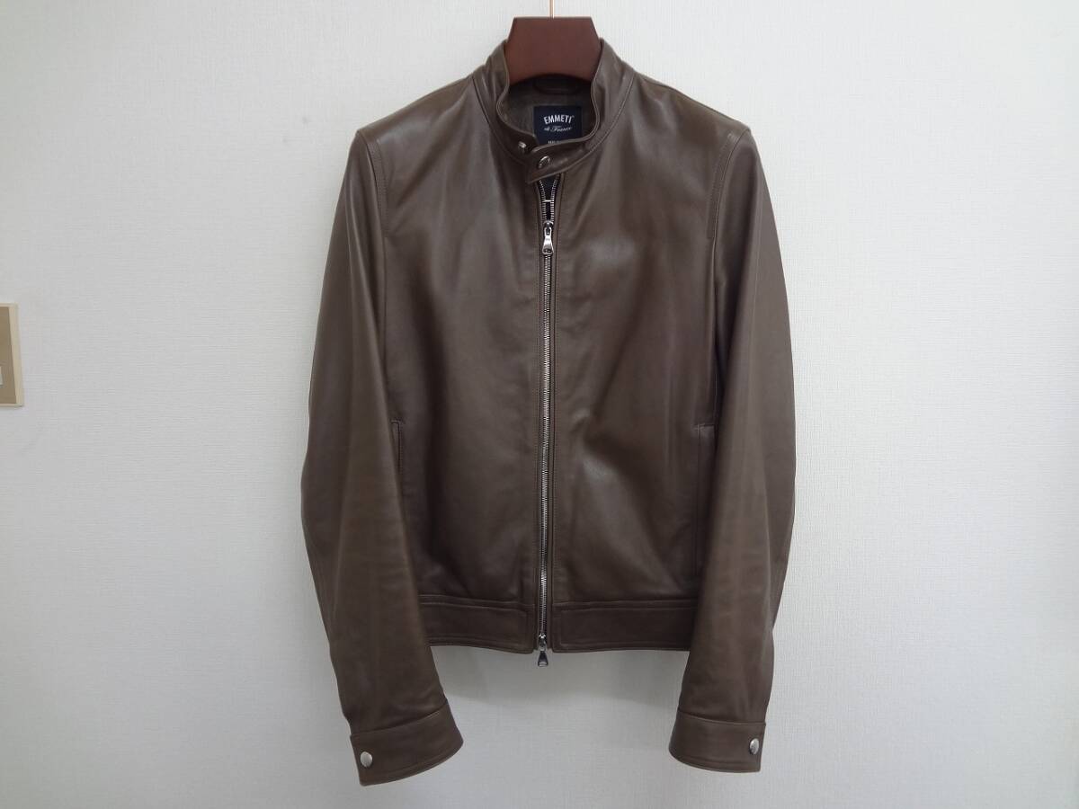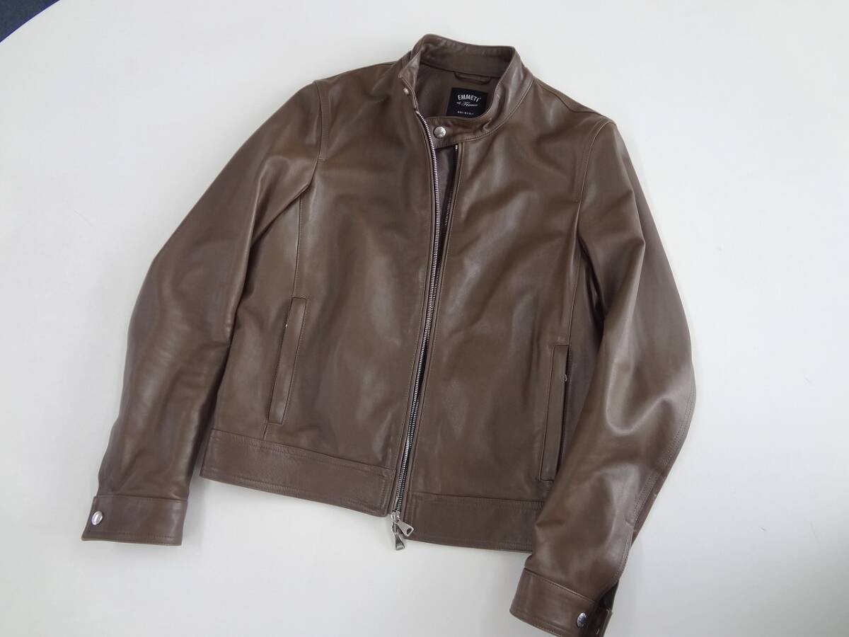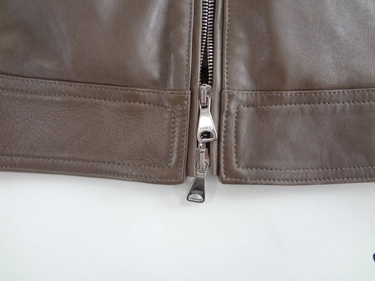 エンメティ EMMETI JURI  シングル ライダース ジャケット カラー グレーブラウン シルバージップ サイズ 46