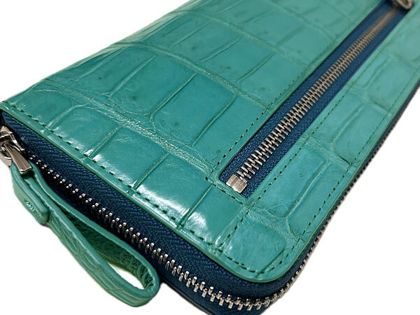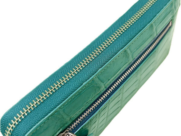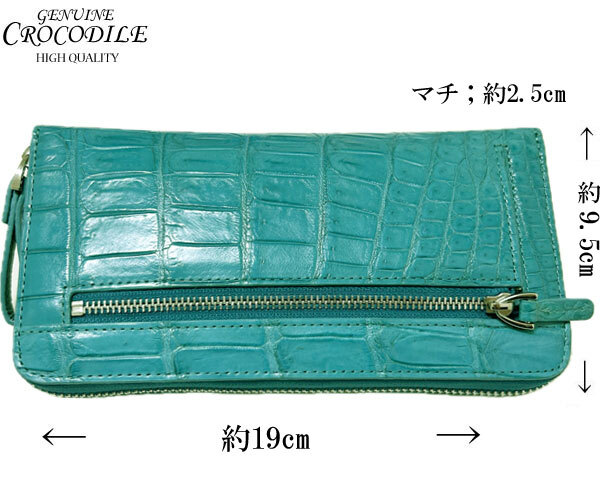 | 重厚な存在感が美しいクロコダイル(ワニ革)を使用した シンプルなデザインの中にも上品な雰囲気が漂う逸品です 独特の模様、磨き上げられた光沢感から”皮革の宝石”と言われる クロコダイル使うほどに艶が増し、風合い豊かに変化していきます ◇色 ターコイズブルー ◇素材 側面:クロコダイル 内側:牛革 裏地:ポリエステル ◇サイズ 横幅;約19cm×縦幅;約9.5cm×厚み;約2.5cm ◇仕様 開閉はラウンドファスナー式です。 ・背面にはファスナー式ポケットがあります。 ・内側は6つに分かれています。 ・カード収納が左右8ヵ所あり使い勝手の良いアイテムです。 ・財布の中央で仕切りの役割を果たすファスナーポケット小銭入れです。 ※天然のクロコダイルを使用しています。 ◇企画:日本 ◇製造:ベトナム ◇現物の写真を使用しています。お届けする商品になります。 | ||