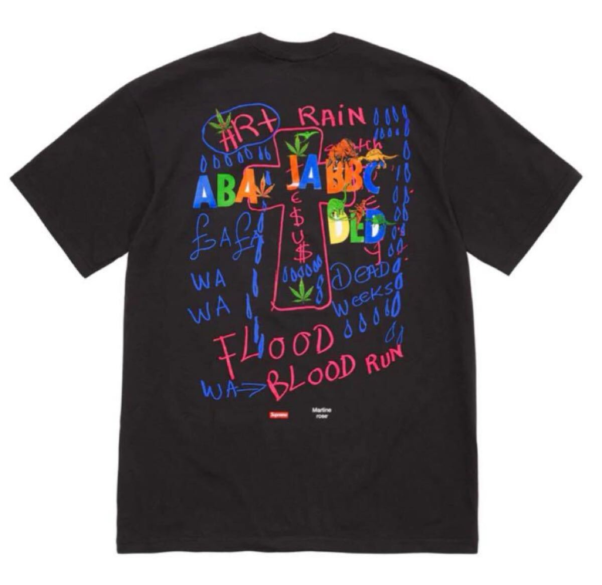 バックには彼のアートワークとシュプリーム、マーティンローズのロゴが入ります。