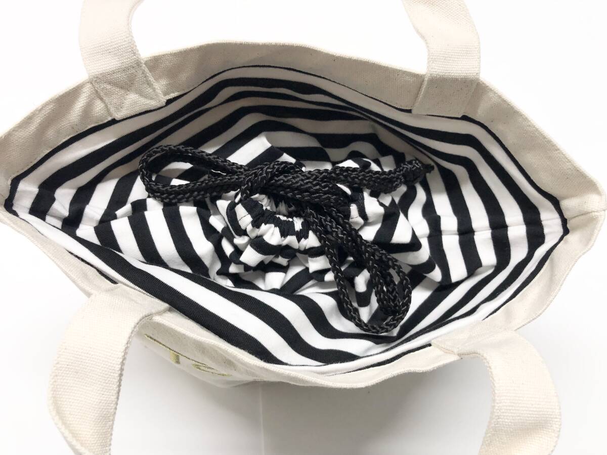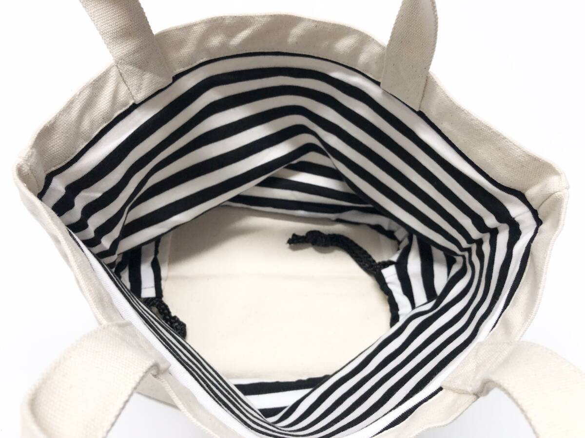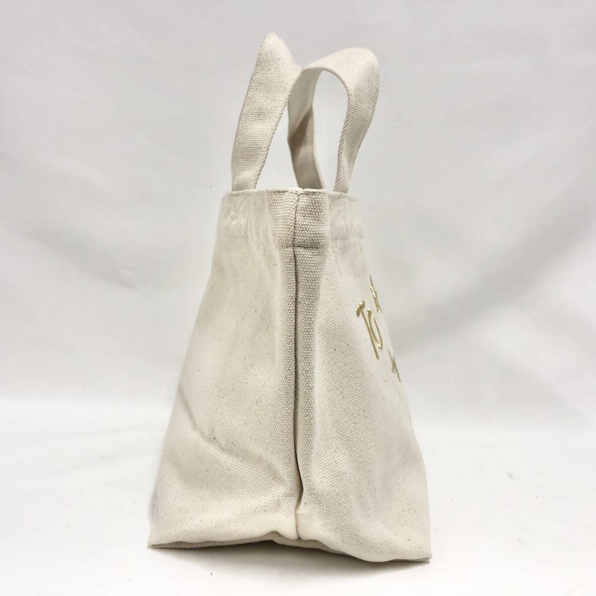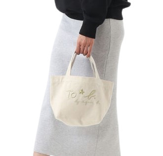 定番人気のキャンバスミニトートバッグに、ラメ糸でロゴ刺繍を入れました。シンプルで持ちやすいバッグは、さまざまなシーンで活躍します。