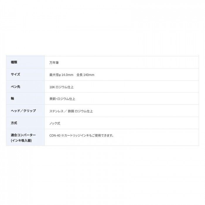 ノック式ボールペンのようにワンノックですばやく書くことができる万年筆です。ペン先の収納時には、気密性の高いシャッター機構によりインキの漏れや乾燥を防ぎます。独創的な発想と優れた機能性をもつ1本です。 |