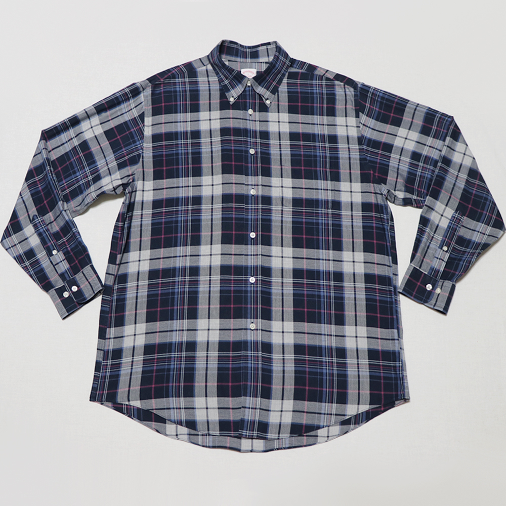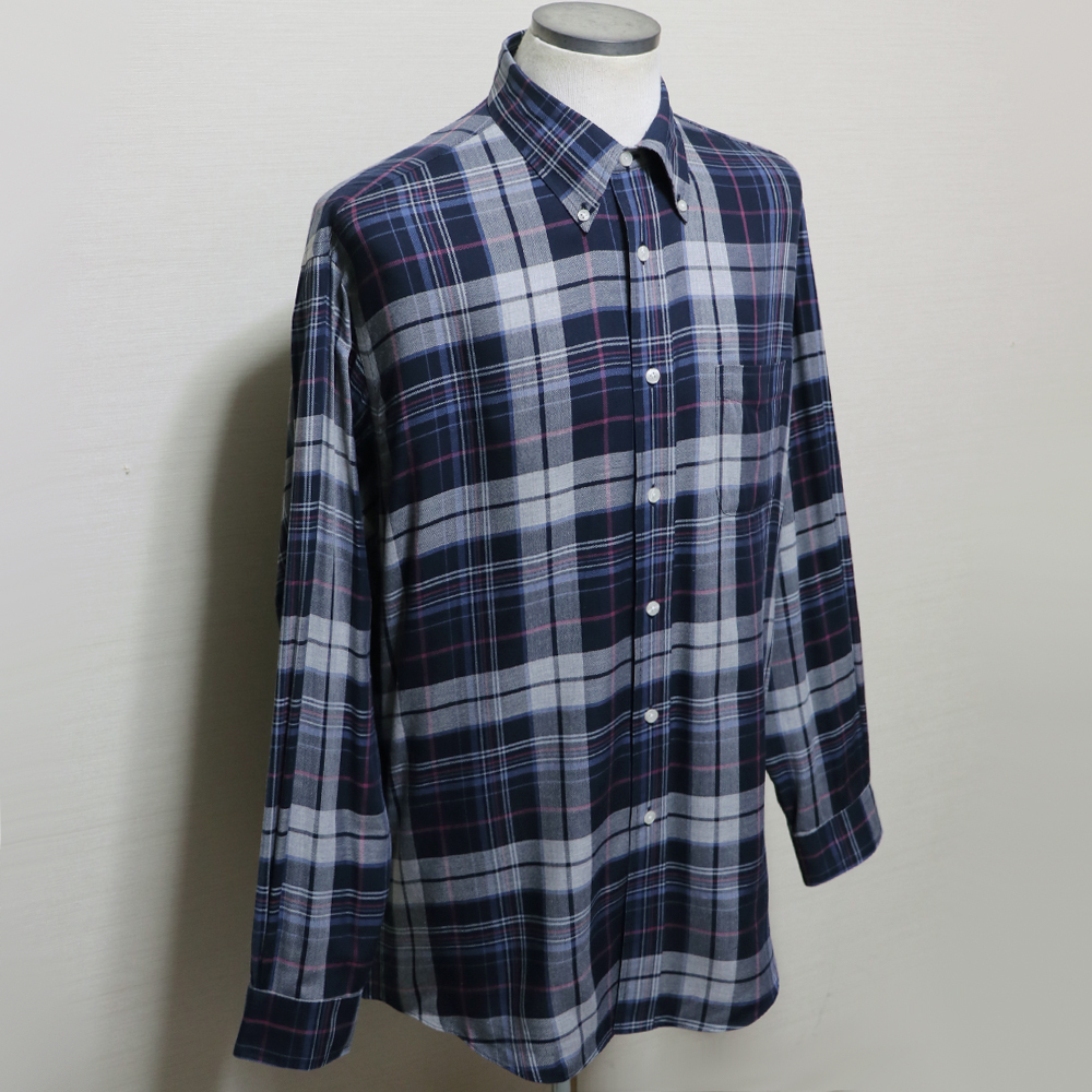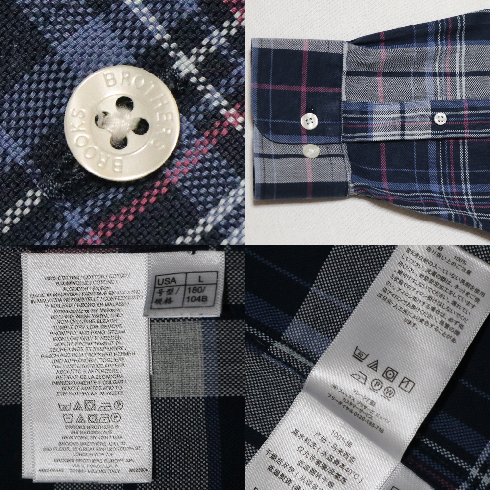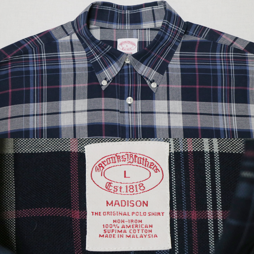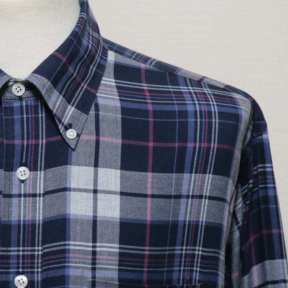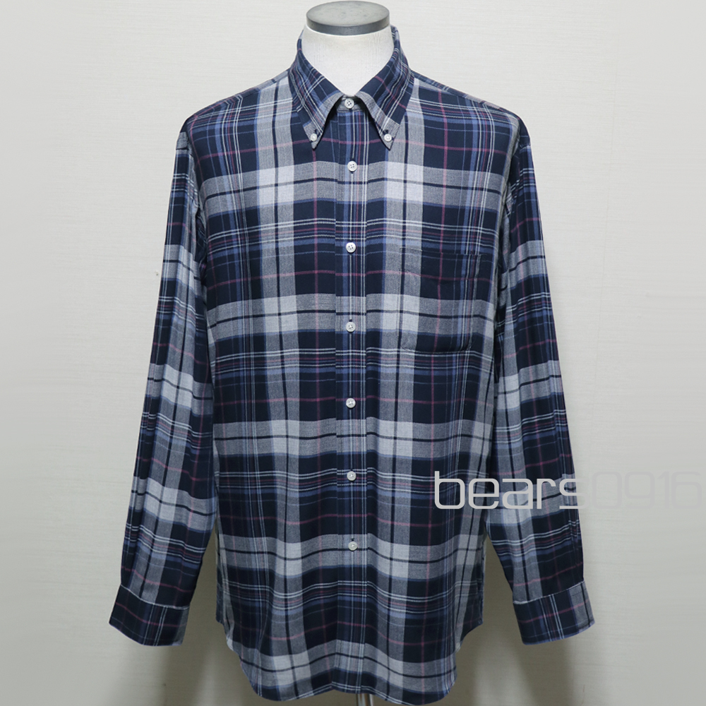 アメリカ購入 美品 BROOKS BROTHERS ブルックスブラザーズ ブロード ボタンダウンシャツ 紺×グレー×朱×青 チェック L サイズです。