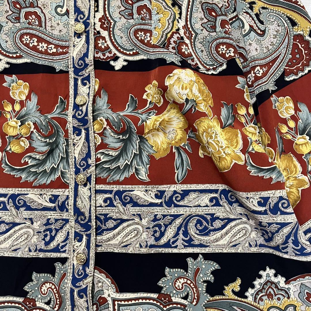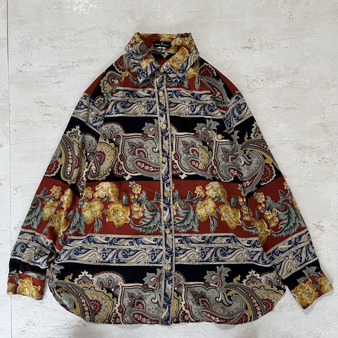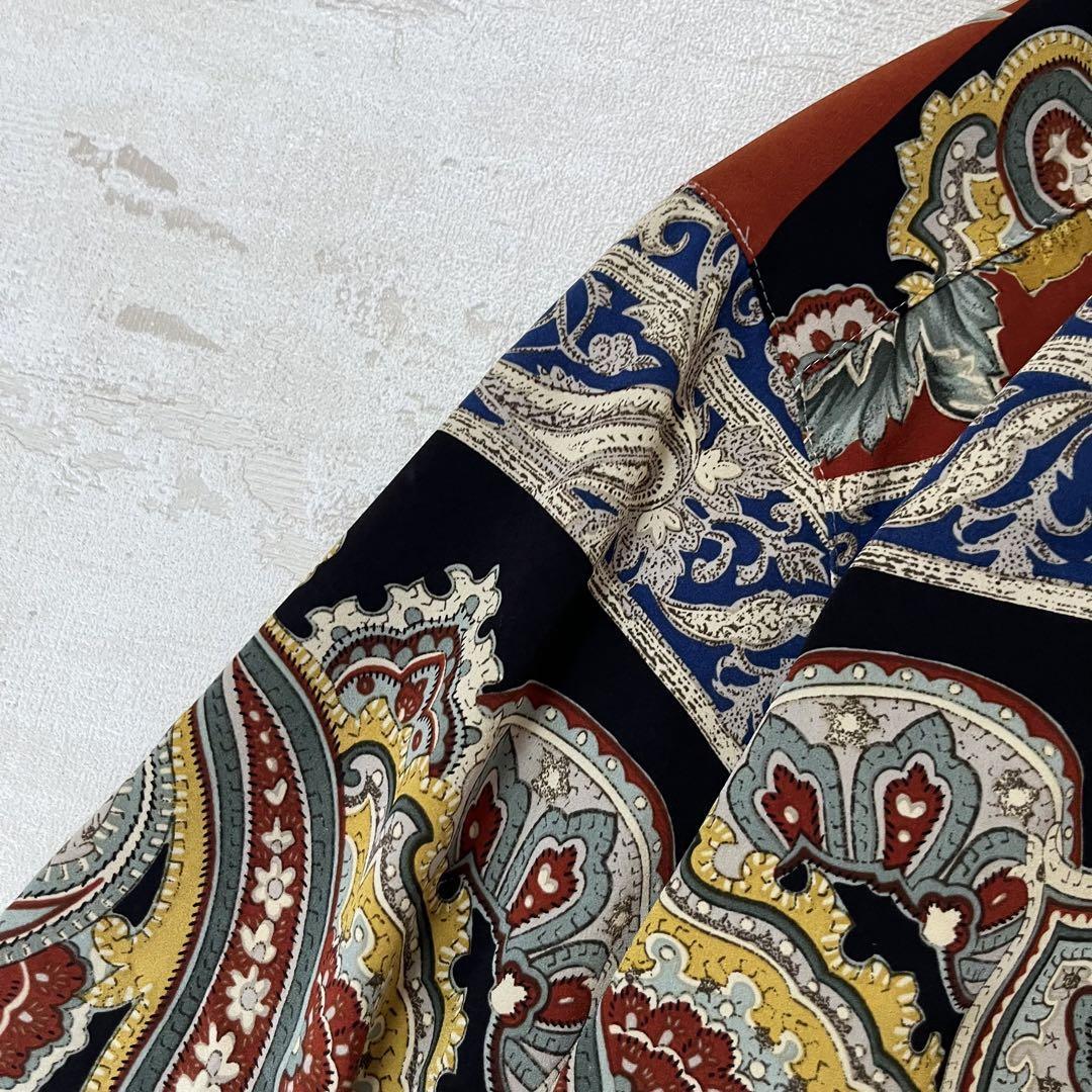 昭和レトロペイズリー柄長袖ブラウススカーフ柄カラフルフリーサイズT1