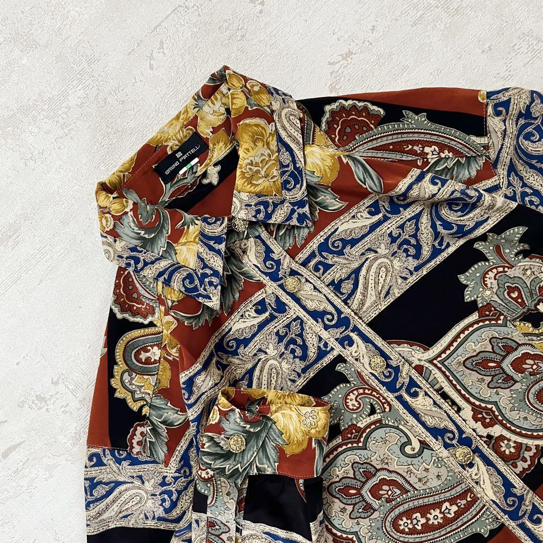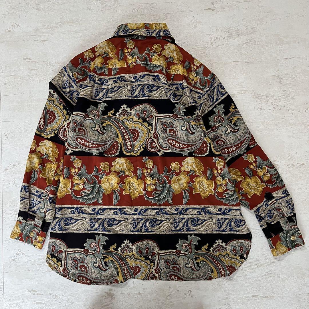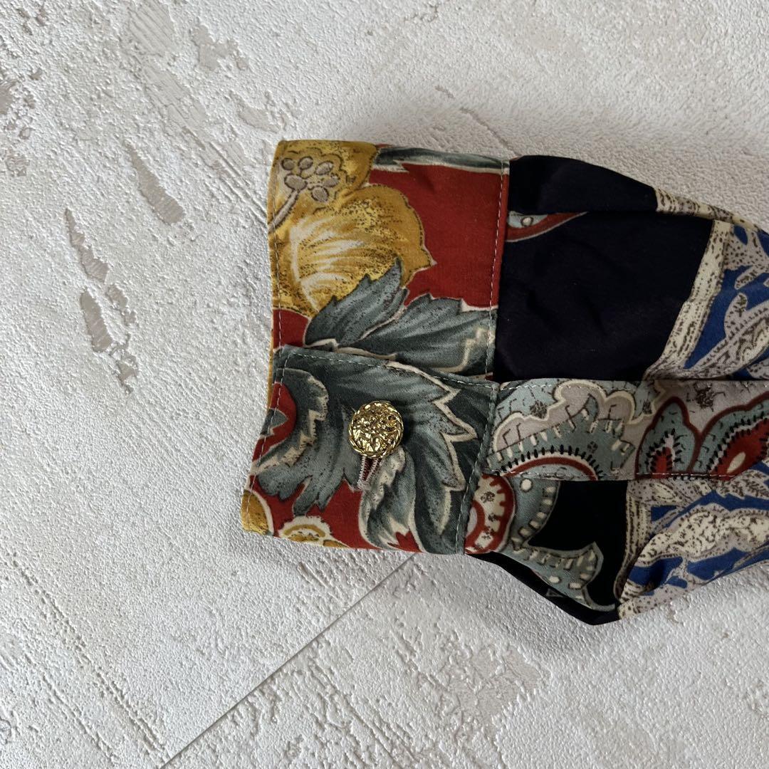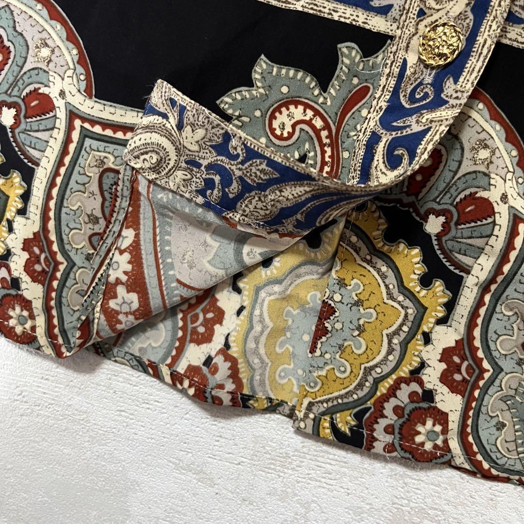 昭和レトロペイズリー柄長袖ブラウススカーフ柄カラフルフリーサイズT1
