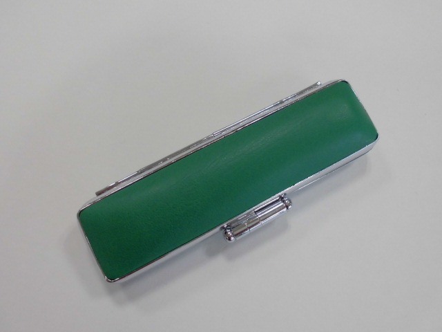 新品 10.5mm用 緑色1 牛革 印鑑ケース 高級朱肉付き グリーン
