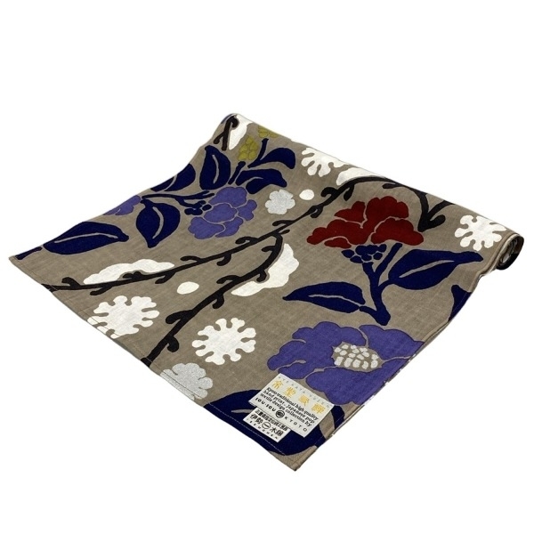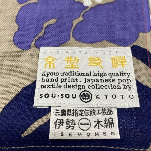 ソウソウ SOU・SOU ストール(ショール) - コットン、コットン グレーベージュ×ダークネイビー×マルチ 京型友禅/雪持ち柳に椿 美品