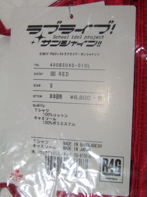 送料無料 タグ付き/未開封品 ラブライブ!サンシャイン!! R4G 学年別 サテンキャミSET Tシャツ レッド 2年生 Sサイズ バンコレ! | |||