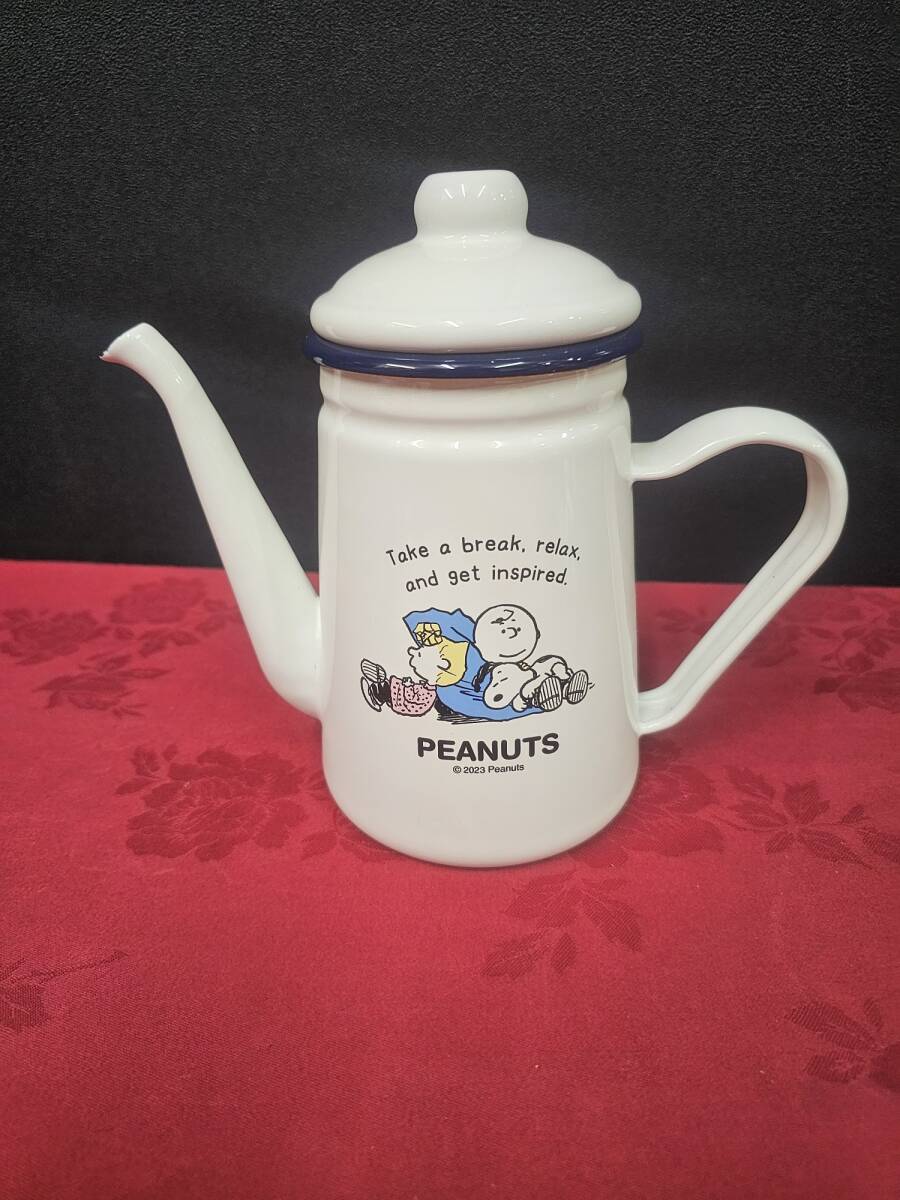 ホワイト スヌーピー ホーロー カフェポット ポット ホーローポット 約215×110高さ195mm(約500g・約1,100mL) ek-644y2 | |||