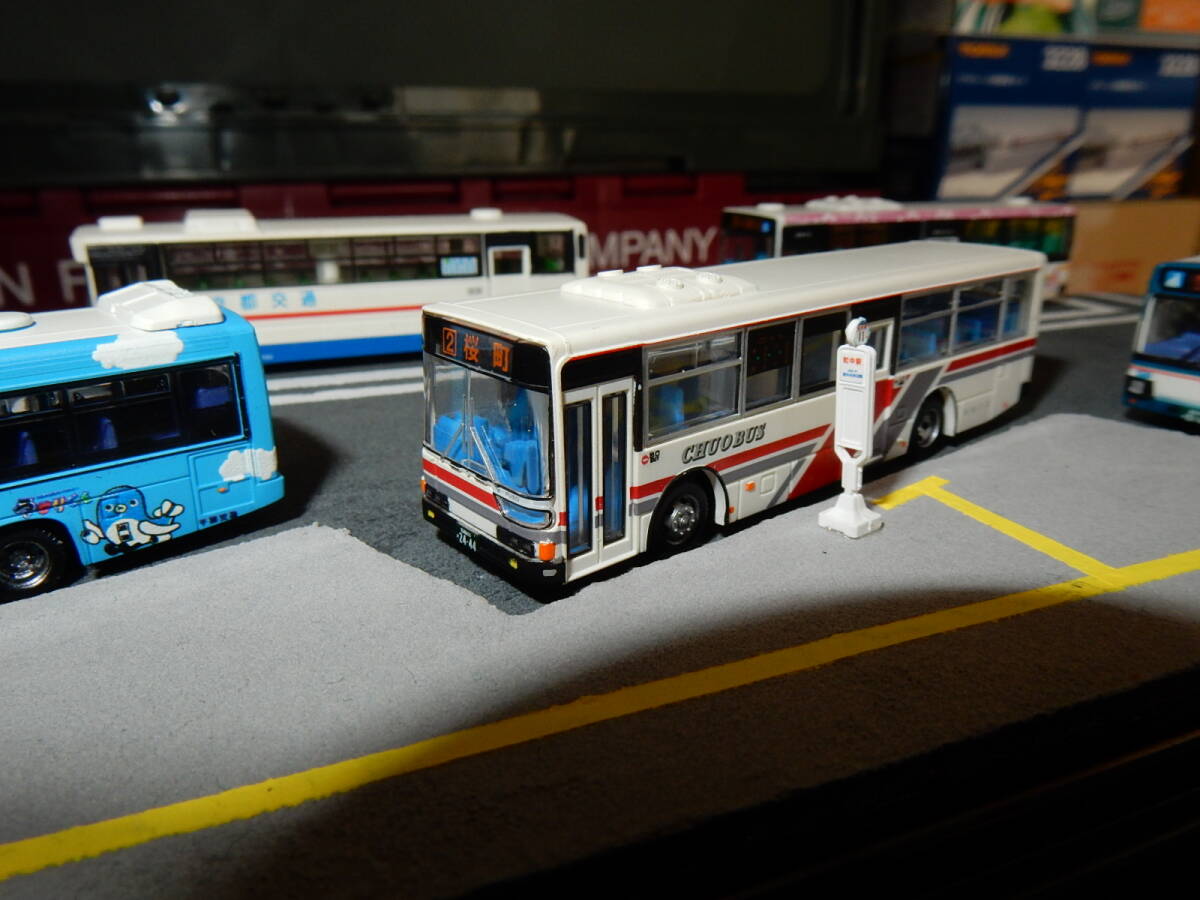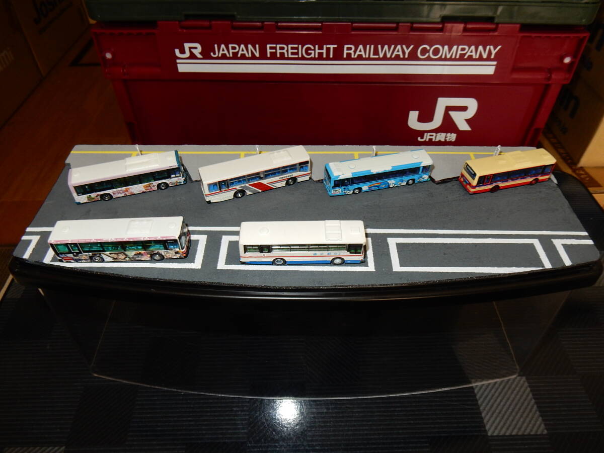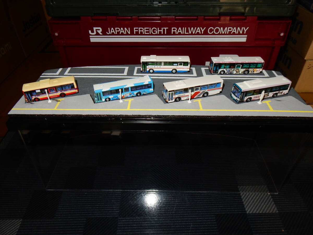 発着レーンに4台、後方の待機場所に3台が停車可能なジオラマ