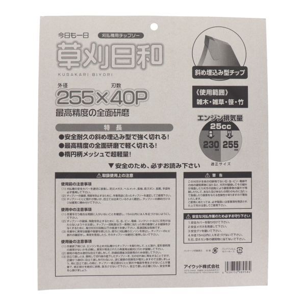 軽く・強く切れる!最高精度の全面研磨 IWOOD 草刈日和チップソー 255X40P ※004009
