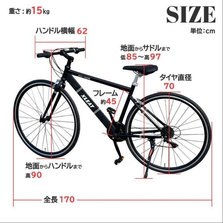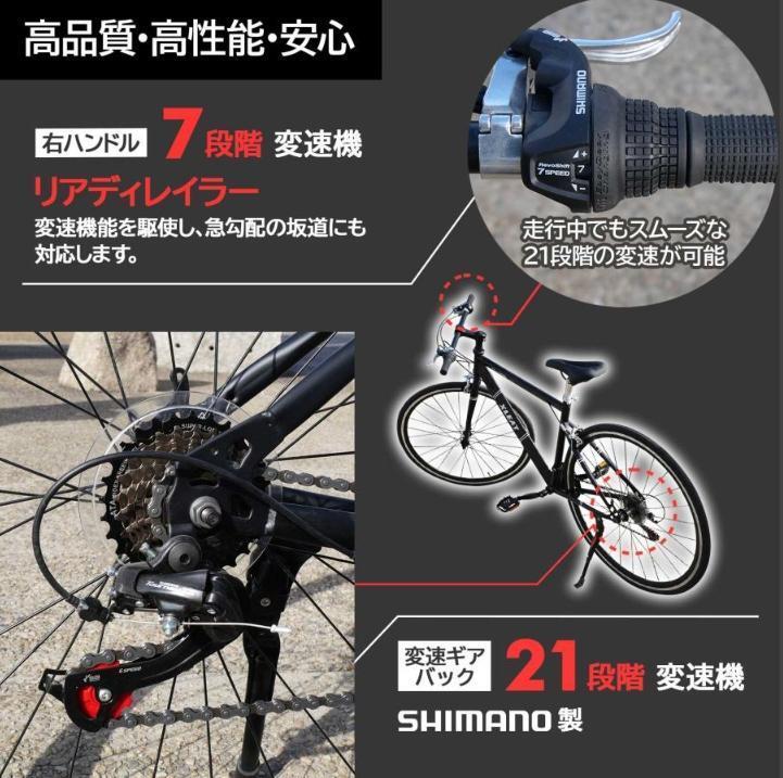 ■タイヤサイズ:700X28C ■変速ギア:21段(シマノ製) ■装備: 反射鏡、片足スタンド、ベル ■フレーム材質:クロモリ