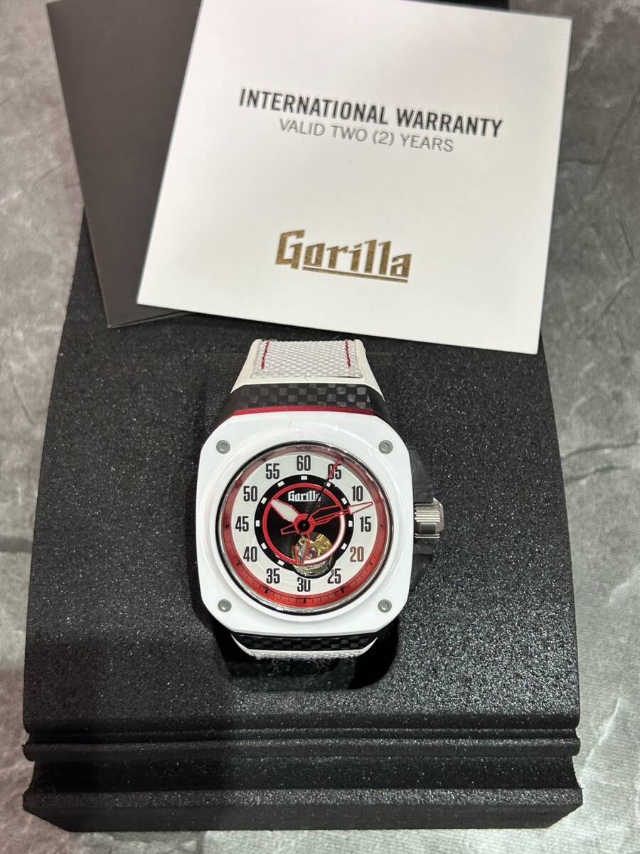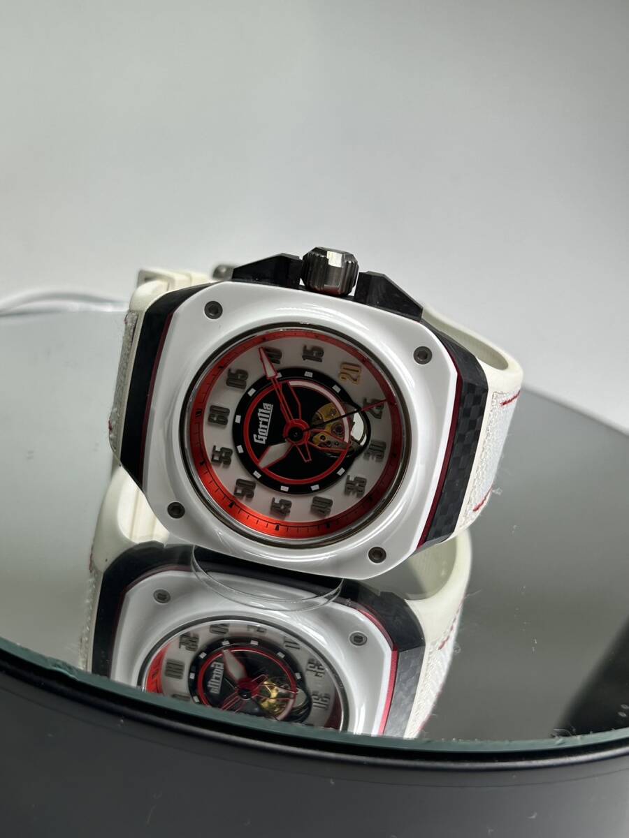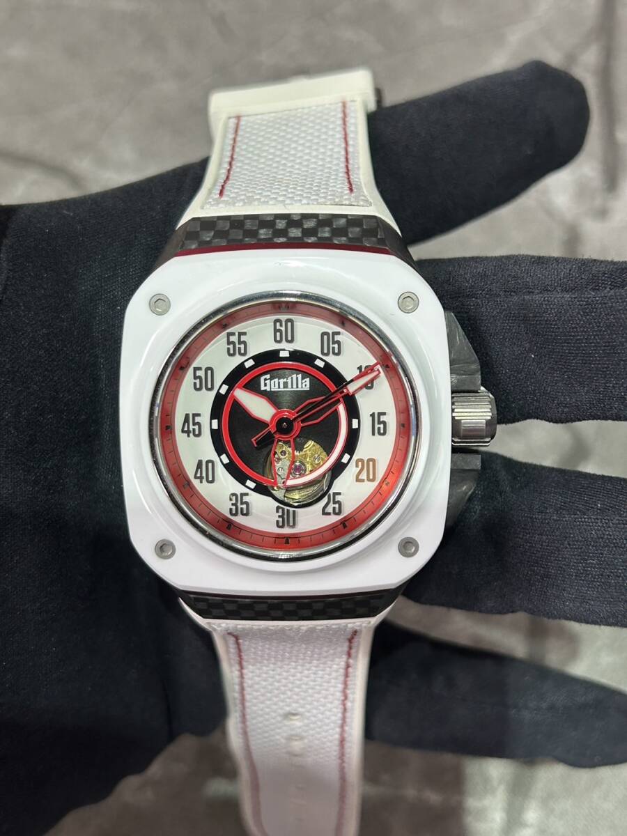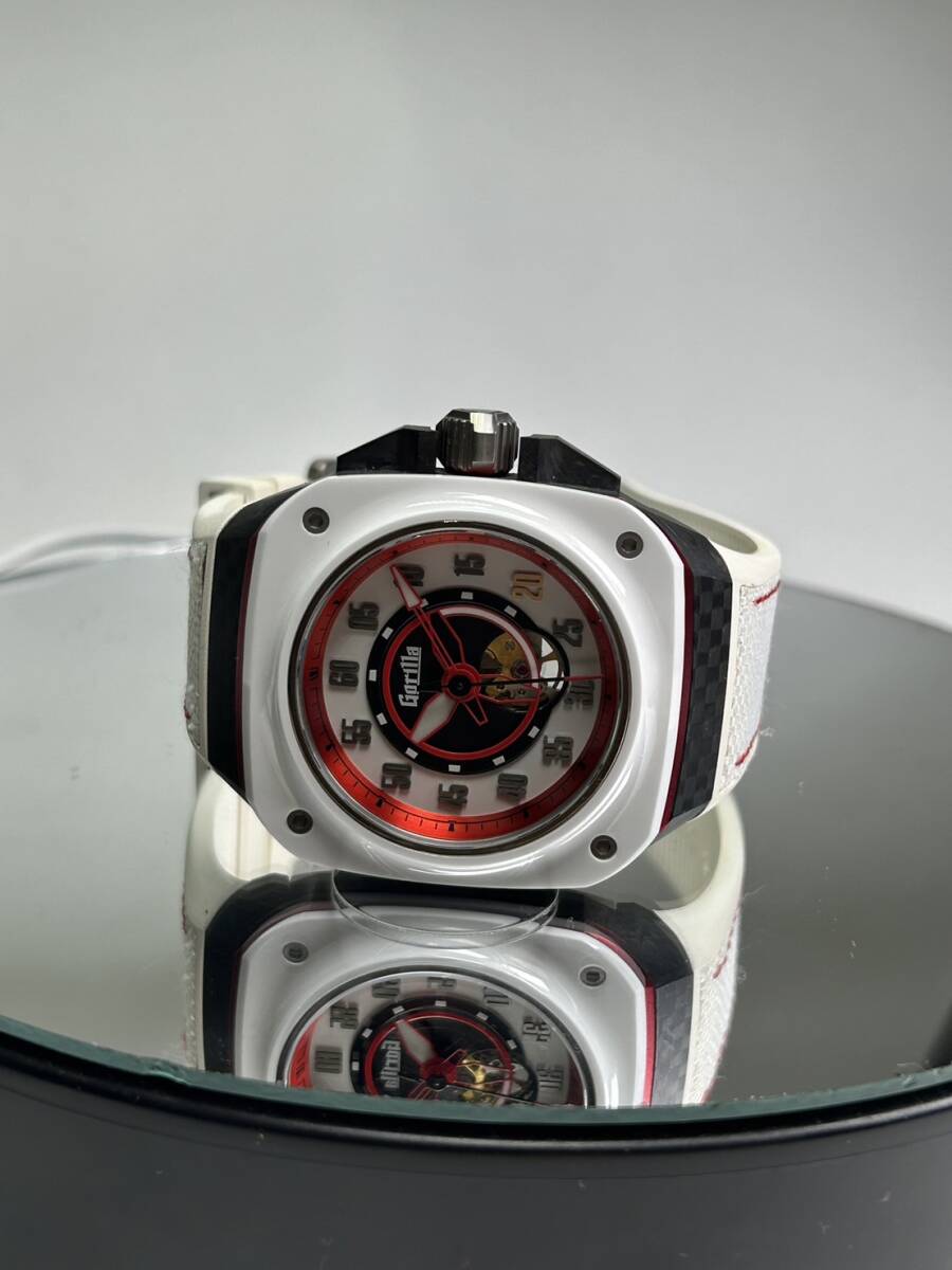 日本の国旗をイメージしたような白/赤の配色となっており、ケースサイドはカーボン、アルミが使用されベゼルはセラミック、ケース裏はチタンと様々な素材が組み合わされたケースとなっております。