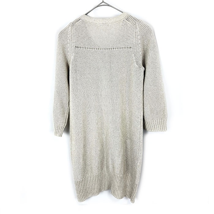 | 【コメント】 ざっくり編みで透け感のある七分袖ロングカーディガンです。ナチュラルな印象。毛羽立ちは少々ありますが、気になる汚れはなく全体的に綺麗なお品物です。  |