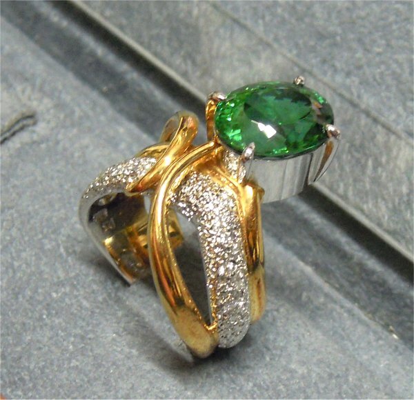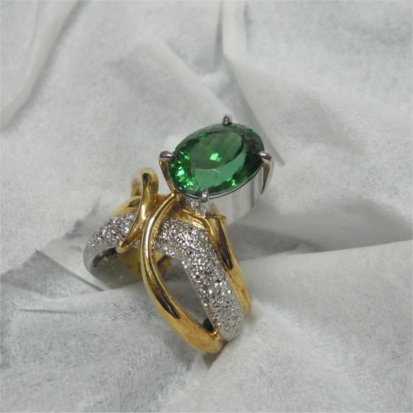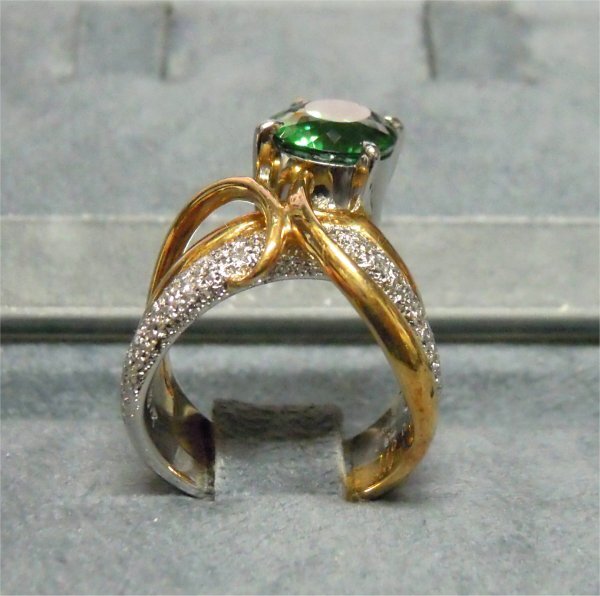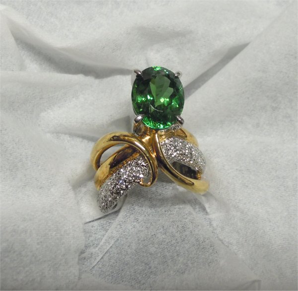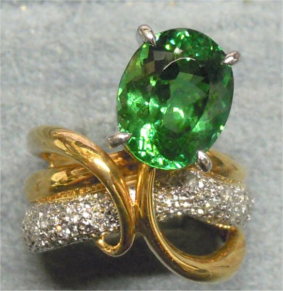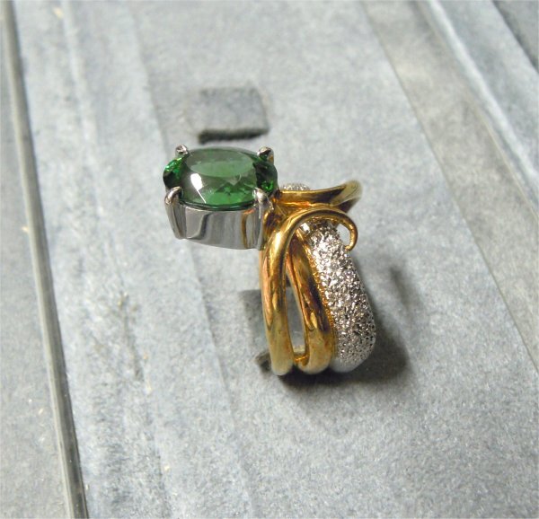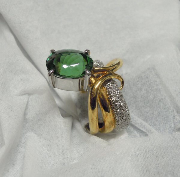 石川暢子 アズタイム グリーントルマリン リング 鑑別書付 K18Pt900 TL4.53 D0.11 13号 中古 | ||||