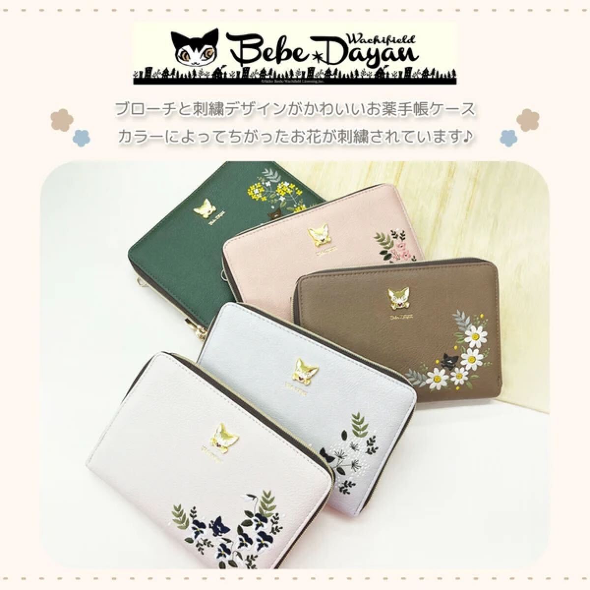 手帳 お薬手帳 おくすり手帳 カード収納 多機能 わちふぃーるど BebeDayan ベベダヤン レディース ガールズ 小銭入れ 猫好き ねこ ネコ 可愛い 猫雑貨 ギフト プレゼント ねこグッズ 刺繍 花 はな ブローチ ダヤン ウォレット さいふ 収納 ブラウン 茶色 グレー ピンク 桃 グリーン 緑 ラベンダー パープル 紫