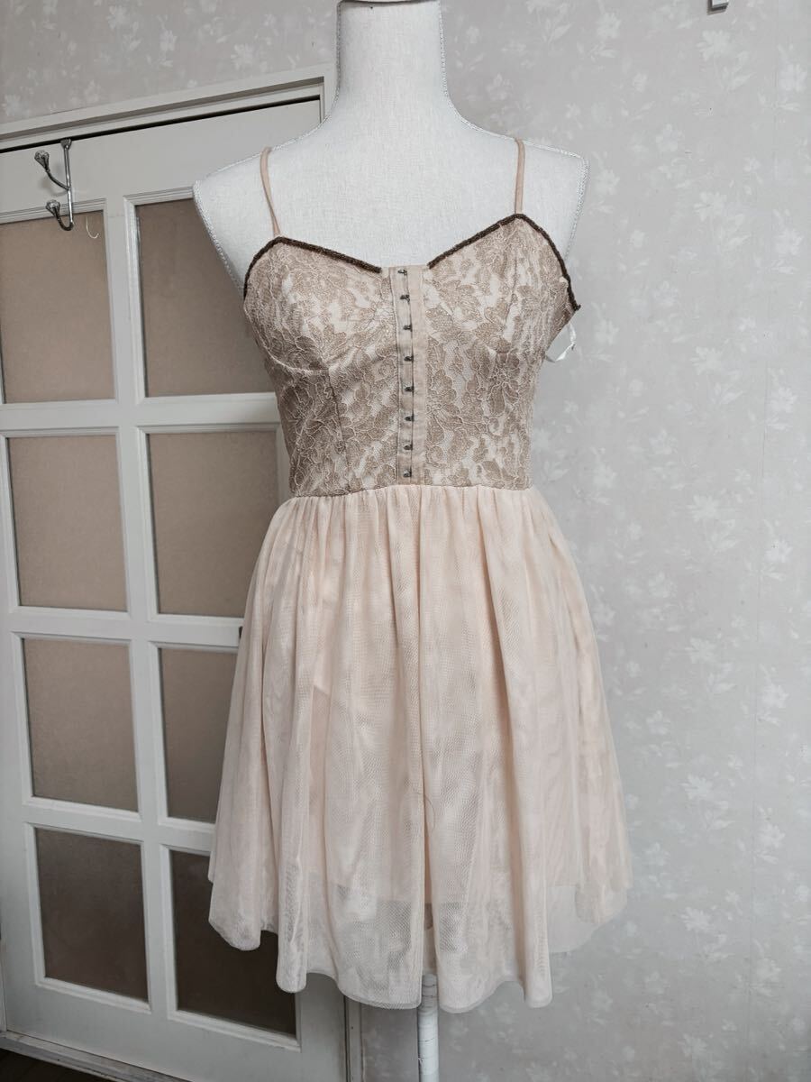 レースとシフォンのコンビネーションが美しいスリップドレスです。
