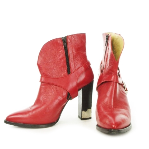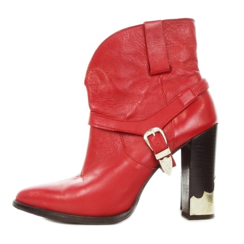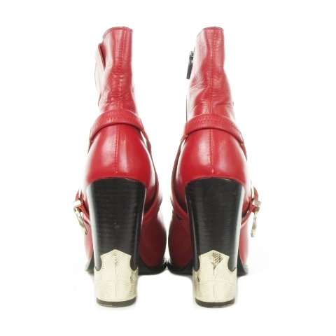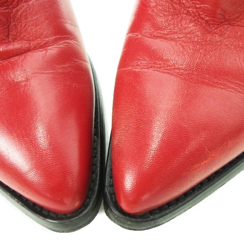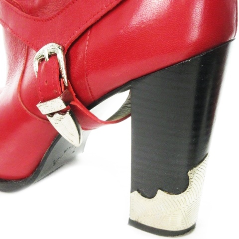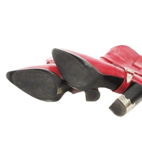 トーガ プルラ ウエスタンブーツ ショートブーツ ハイヒール ポインテッドトゥ レザー バックル メタルパーツ 39 24.5cm 赤 レッド