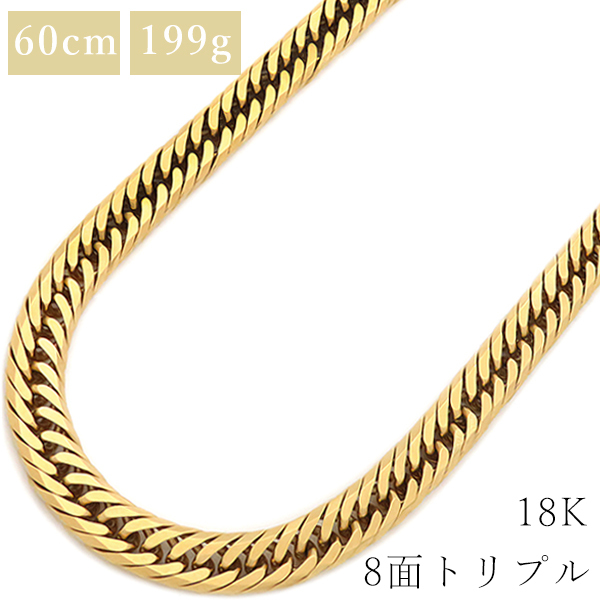 喜平 ネックレス K18 18金 60cm 199.9g 8面 トリプル K18YG ゴールド 特大 造幣局検定マーク ショッピングローン対応していません 中古