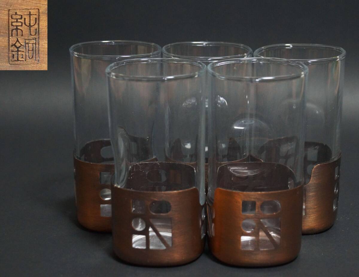 【寂】ガラス製 グラス 純銅製ホルダー付 五客セット s70501