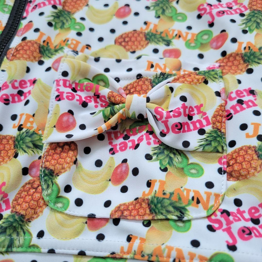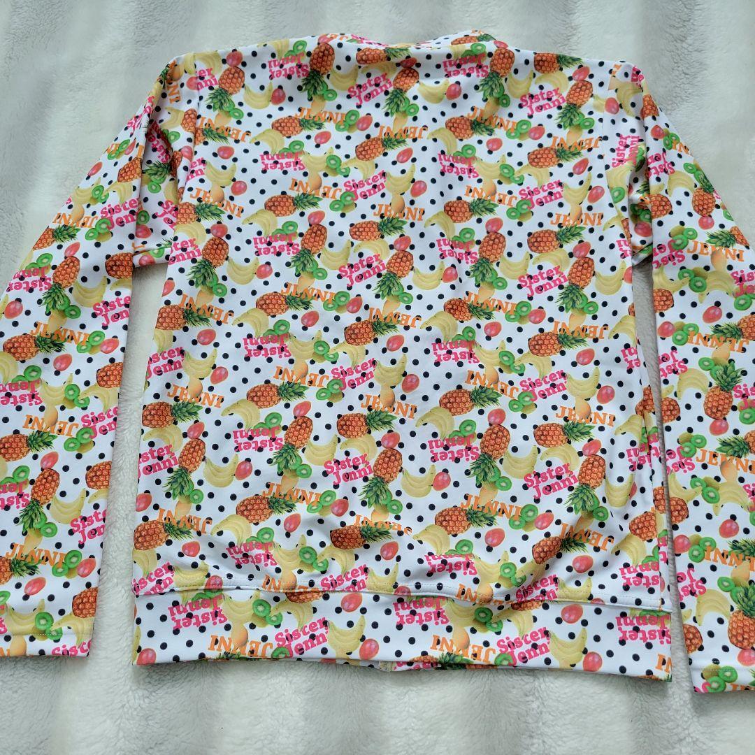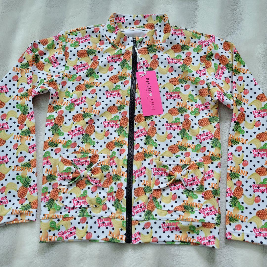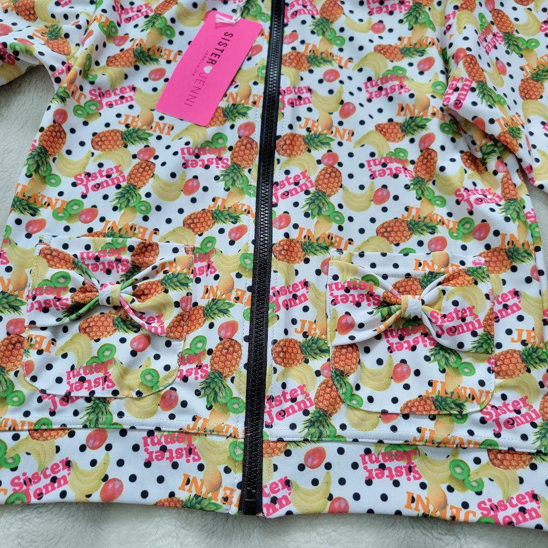 フルーツ柄のラッシュガード、サイズ120、ジッパー付きで便利。