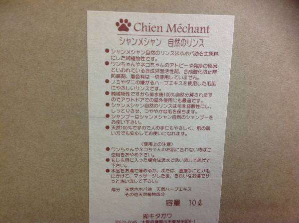 「自然のシャンプー」が弱アルカリ性のため。これを弱酸性の「自然のリンス」で中和するだけというものです。弱アルカリ性のシャンプーで洗うと瞬間的にキューティクルが開くため、弱酸性のリンスをかけることでキューティクルが閉じ、さらさらの被毛になります。
