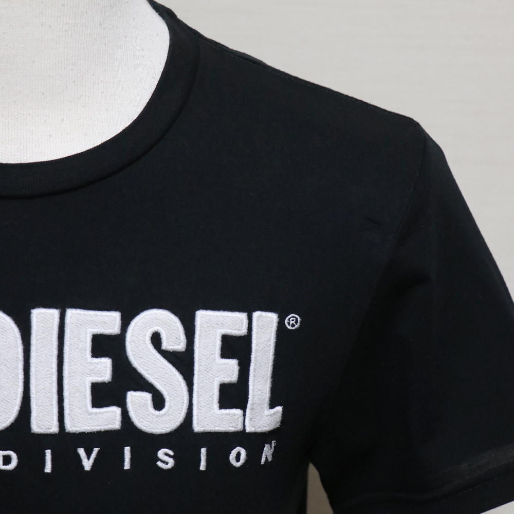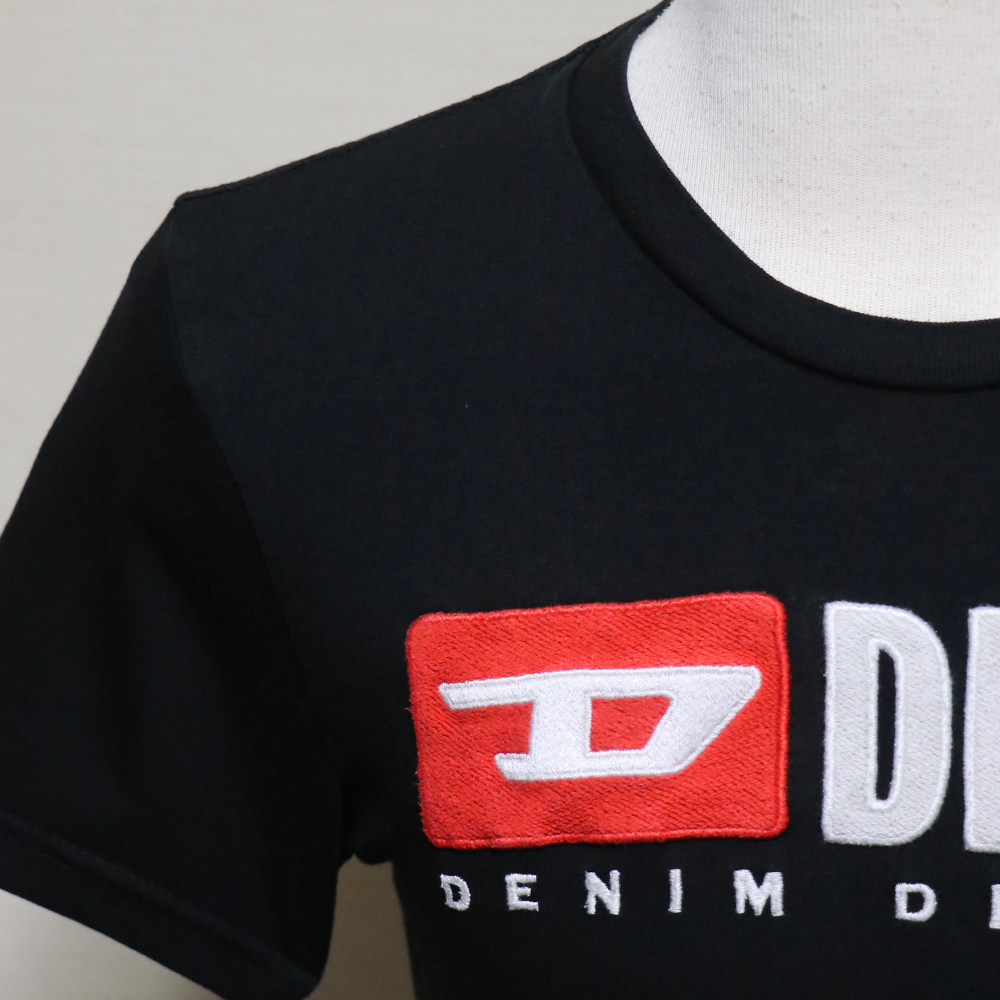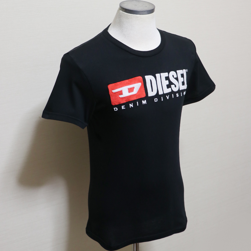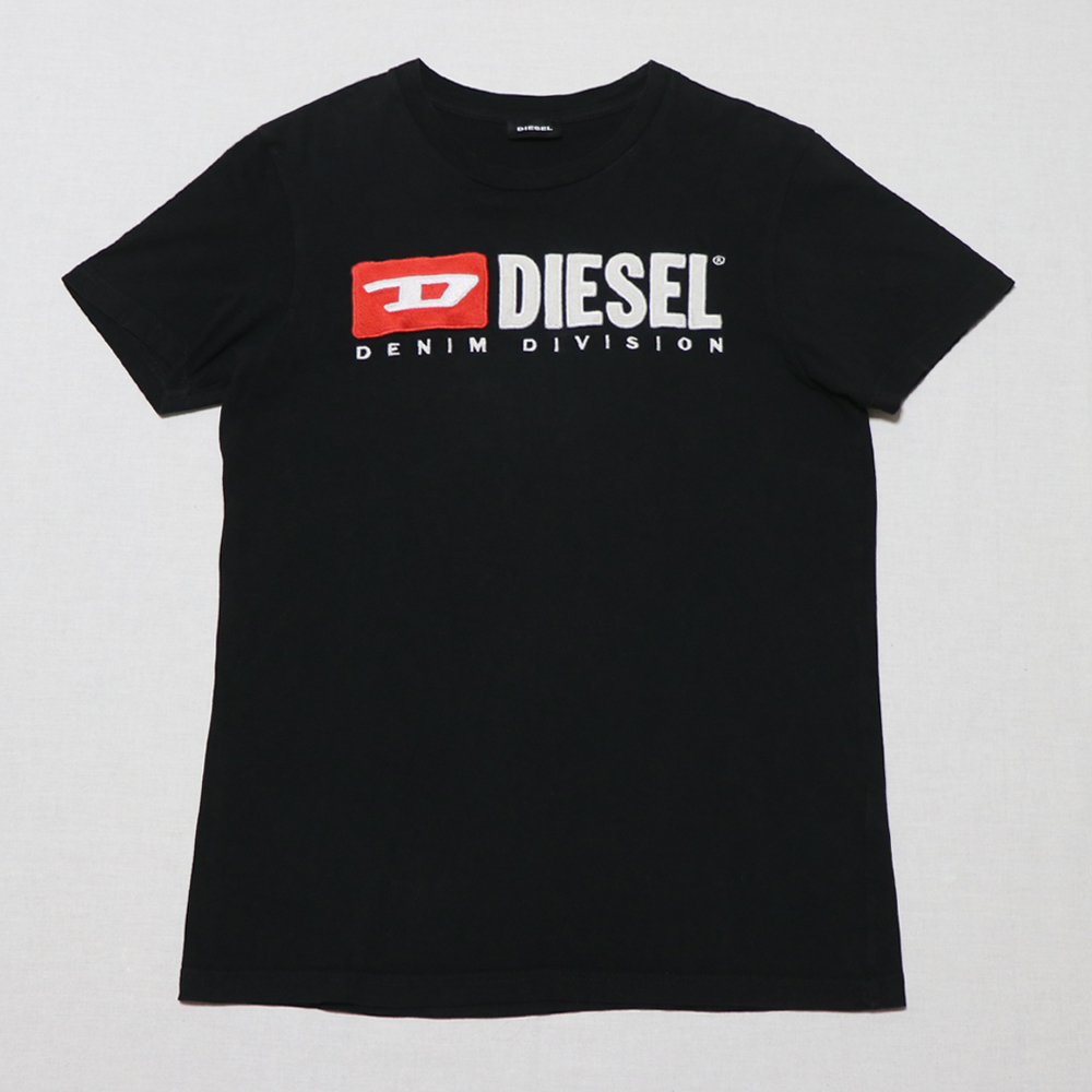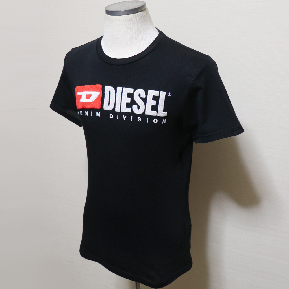 タイトで美しいシルエットのTシャツ。ソフトなコットンフライス素材に、 パイル地の白×赤のロゴワッペン刺繍。希少なブラックのボディーにブランドロゴが鮮やかに浮かび上がって、インパクト抜群!品よくアクティブにきまる、ディーゼルならではの逸品です。