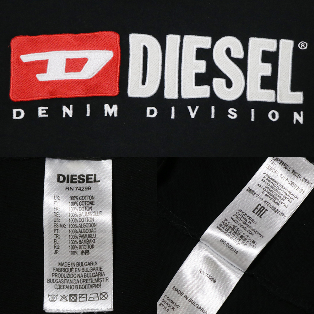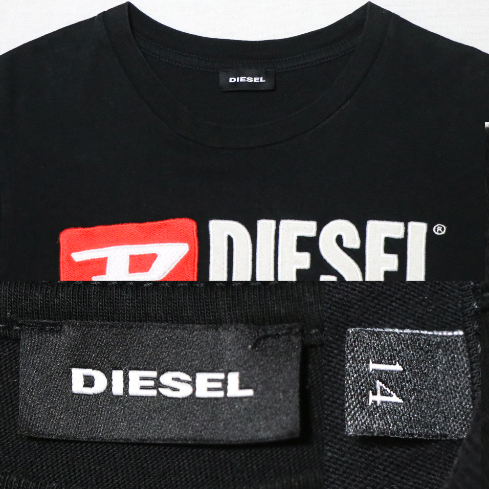 美品 DIESEL ディーゼル 半袖 Tシャツ 黒 白×赤パイルワッペン刺繍 14 サイズです。