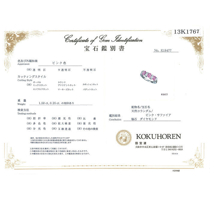 | 付属品 | 鑑別書 | ||