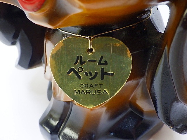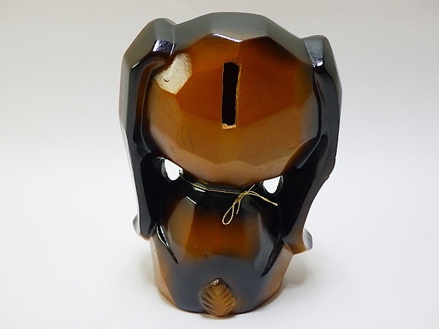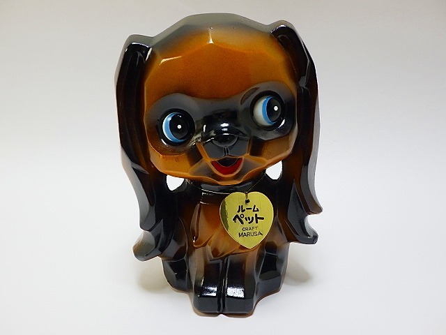 ★ 昭和レトロ ルームペット 木彫調 陶器製 貯金箱 ① ワンちゃん 犬 ドッグ 約18cm ★ H425 ceramic dog piggy bank CRAFT MARUSA | ||||||||||||||||||||