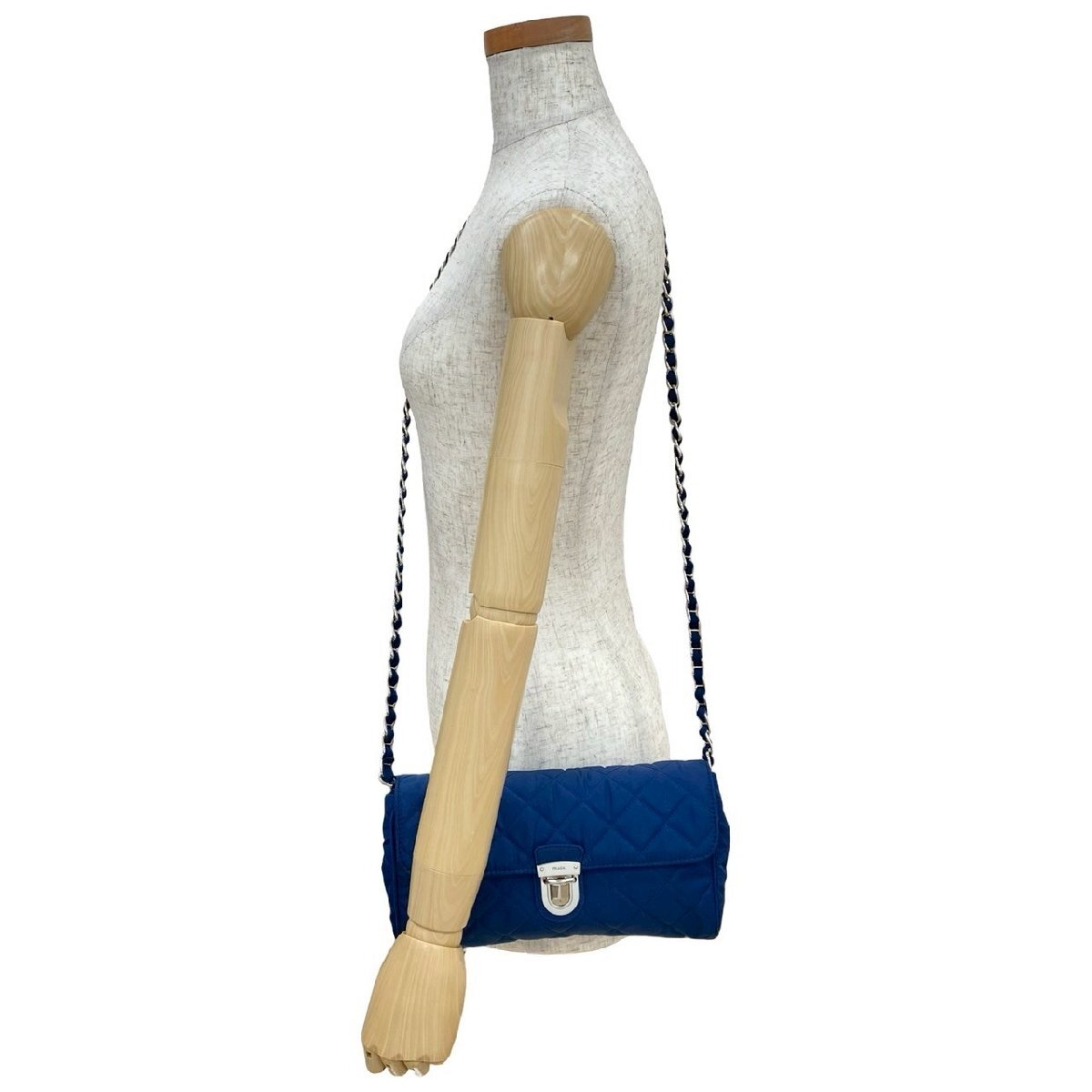 極 美品 PRADA プラダ ロゴ 金具 キルティング ナイロン サフィアーノ レザー 本革 チェーン ショルダーバッグ ポシェット ブルー 22336