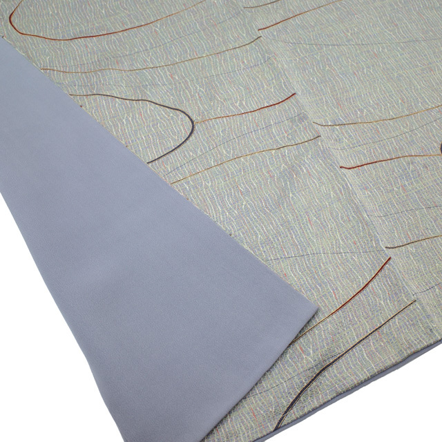 【新古品】 すごい値! 小紋 未使用 着物 正絹 作家物 落款 有り グレー 流線 金彩 カジュアル 新古品 仕立て上がり 身丈156 裄丈65.5 Mサイズ 春 秋 冬 未使用 リサイクル着物 たとう紙付き 送料無料 小紋 観劇 お出かけ ショッピング など カジュアルシーンに 30代 40代 50代 60代 ~ 販売 購入 リサイクル すごいね みやがわ nek01398