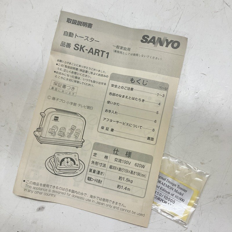 ◆ 【ジャンク品】 SANYO サンヨー 家電 アート引越センター ドラえもん トースター 98年製 当時物 レア 元箱あり SK-ART1 現状品 2.1kg