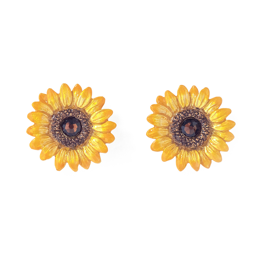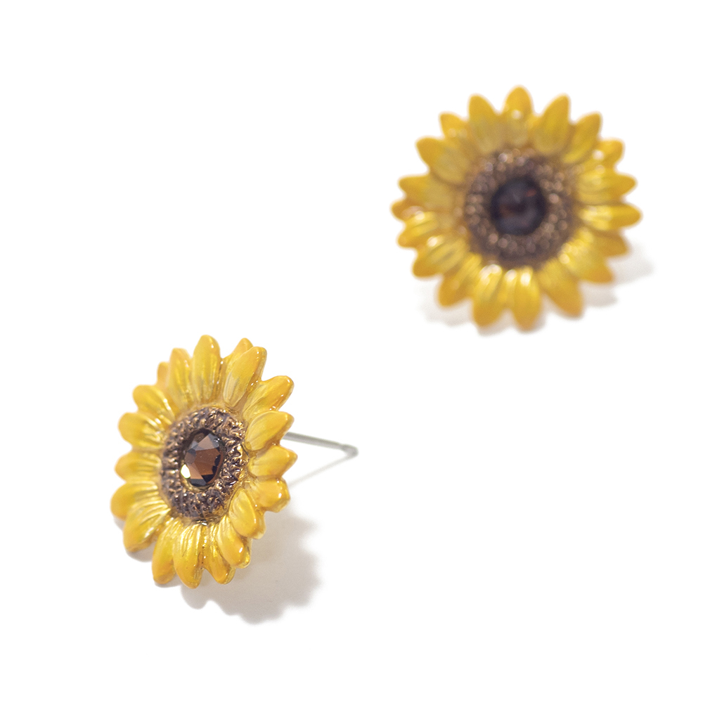 暑い季節も元気に過ごせそうなヒマワリのイヤリング。晴れやかな気分にしてくれる黄色い花びらが顔まわりを華やかにしてくれます。花芯にはカットガラスが埋め込まれているので太陽の光を反射してキラキラと輝きます。ヒマワリの花言葉は「憧れ」「あなただけを見つめる」【商品説明】・素 材: ピューター、カットガラス ・生産国:日本製・サ イ ズ:縦横19(mm)・色:イエロー【発送方法】クリックポストにて発送させて頂きます。