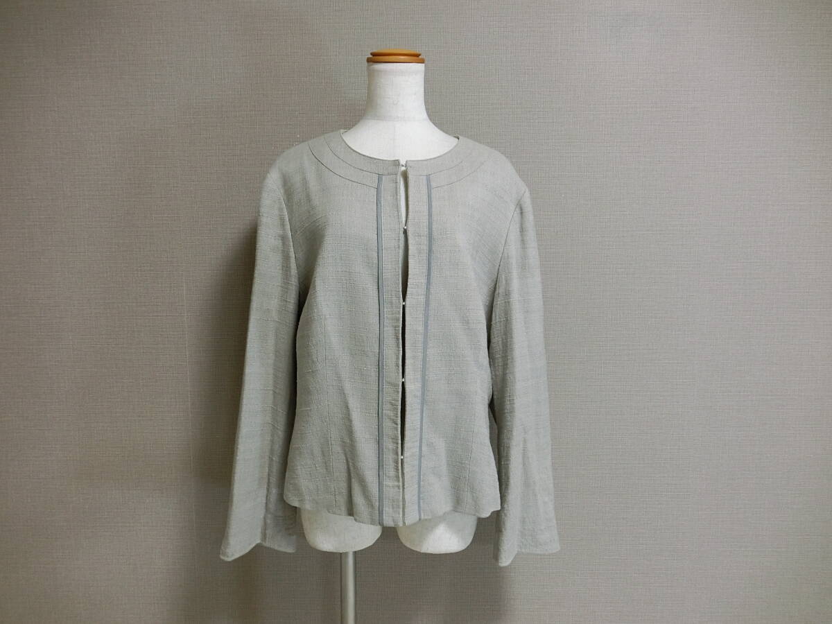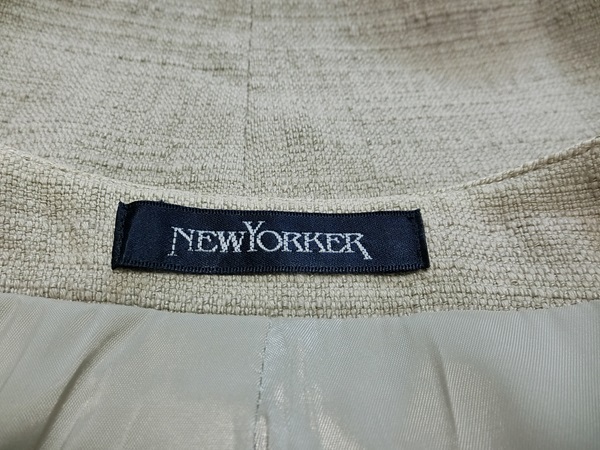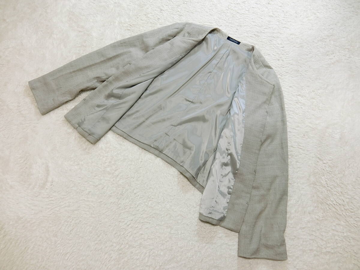 極美品 NEW YORKER ニューヨーカー ストレッチ シルク混 ノーカラージャケット グレージュ 19 大きいサイズ | |