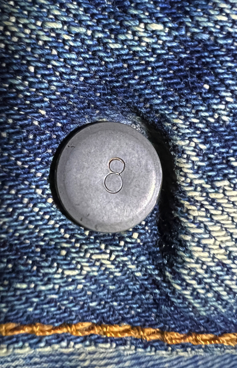 Small eオレンジタブ、メインファスナーは42Talon、スレーキスタンプ、 ボタン裏刻印は8です。