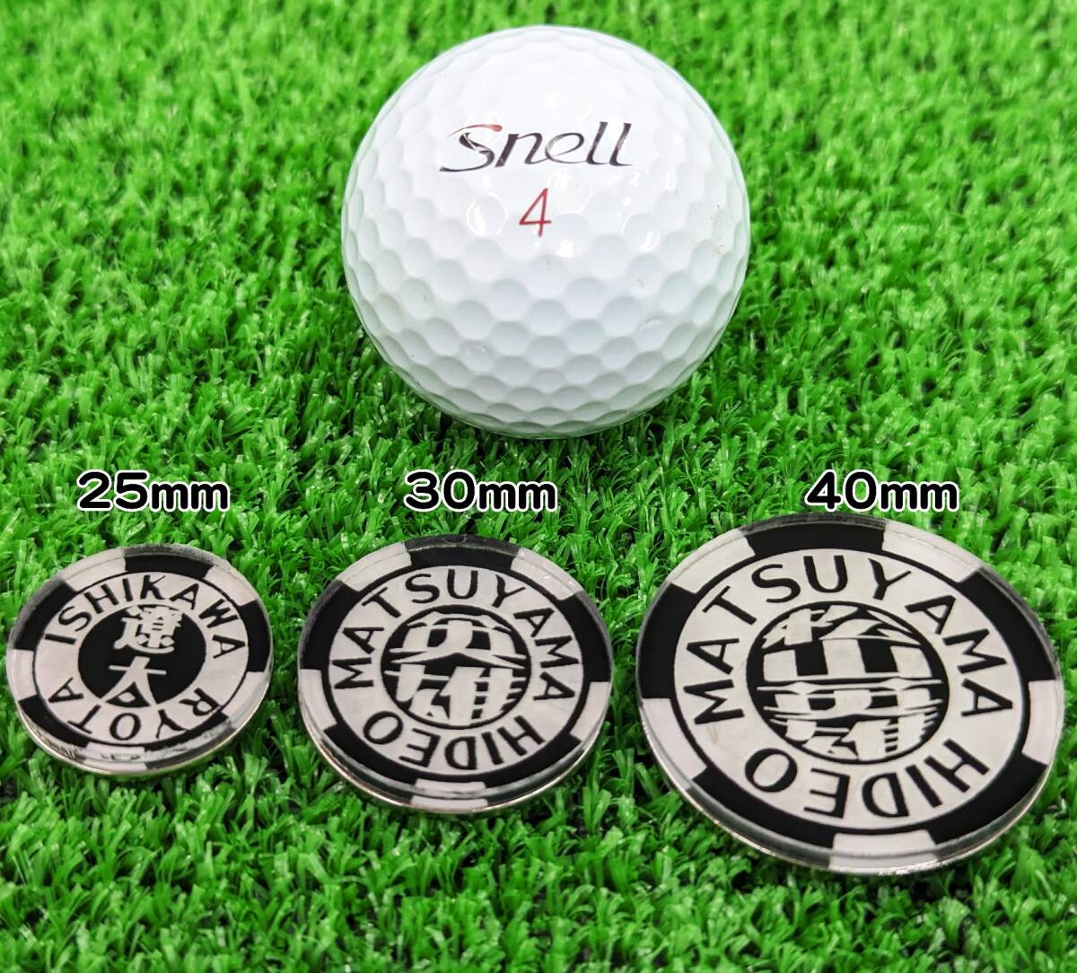 直径40mm 厚さ3~4mm 重さ約20gなので、グリーン上でもどっしりとマークできます。