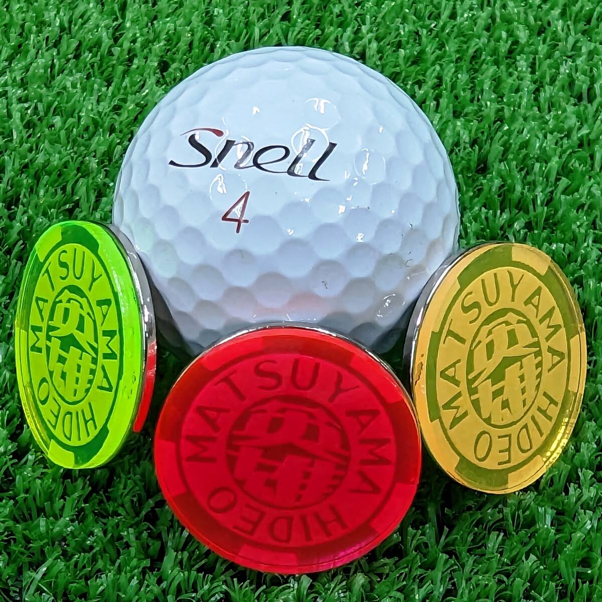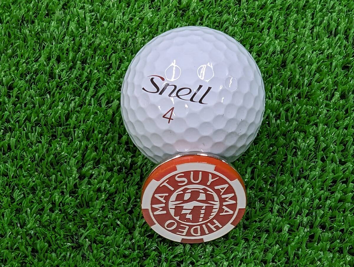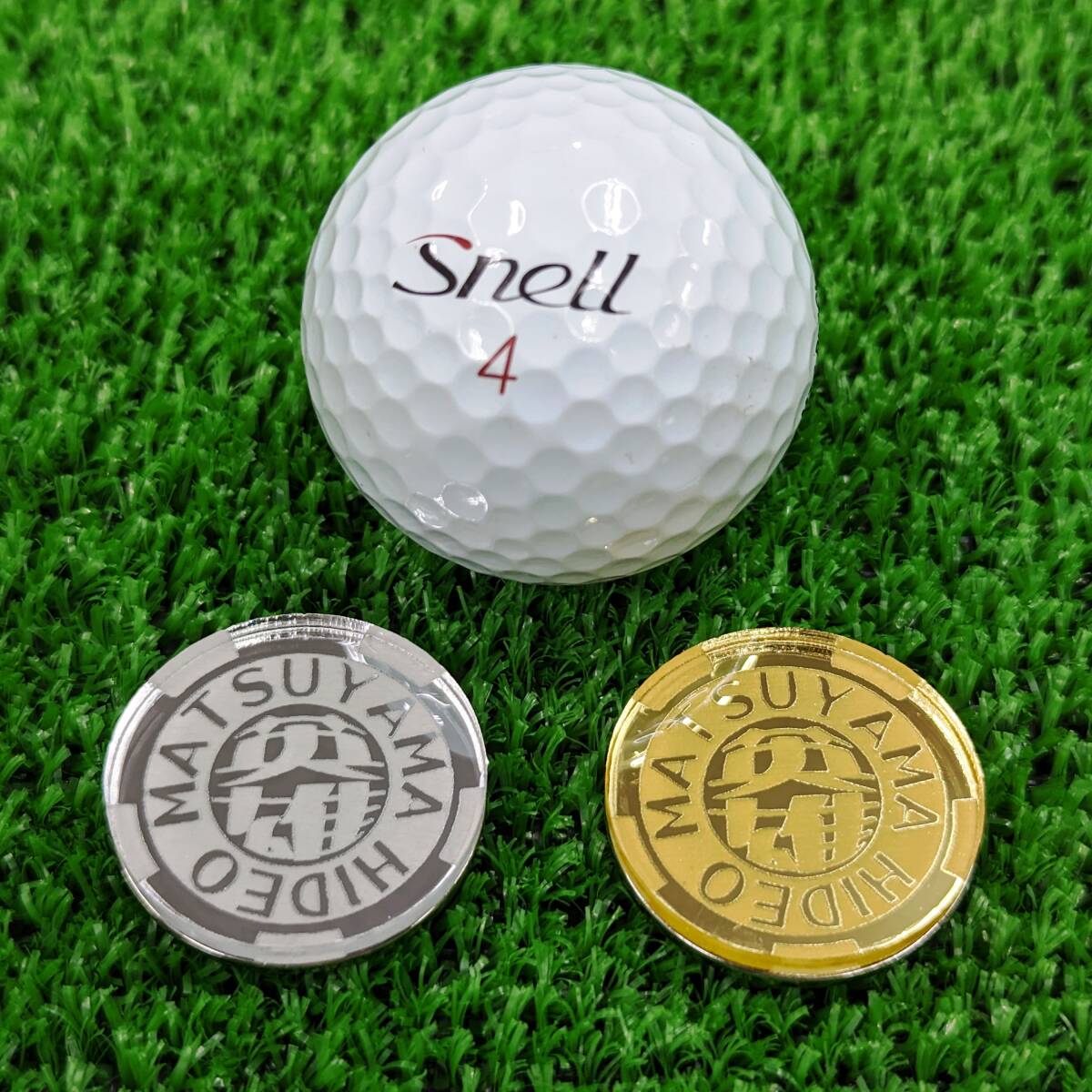 カジノチップマーカー風のデザインにフルネームやニックネームのローマ字で囲い、中心には漢字やひらがななどお好みのデザインをお選びいただける、世界に一つだけの完全オリジナルゴルフマーカーです。