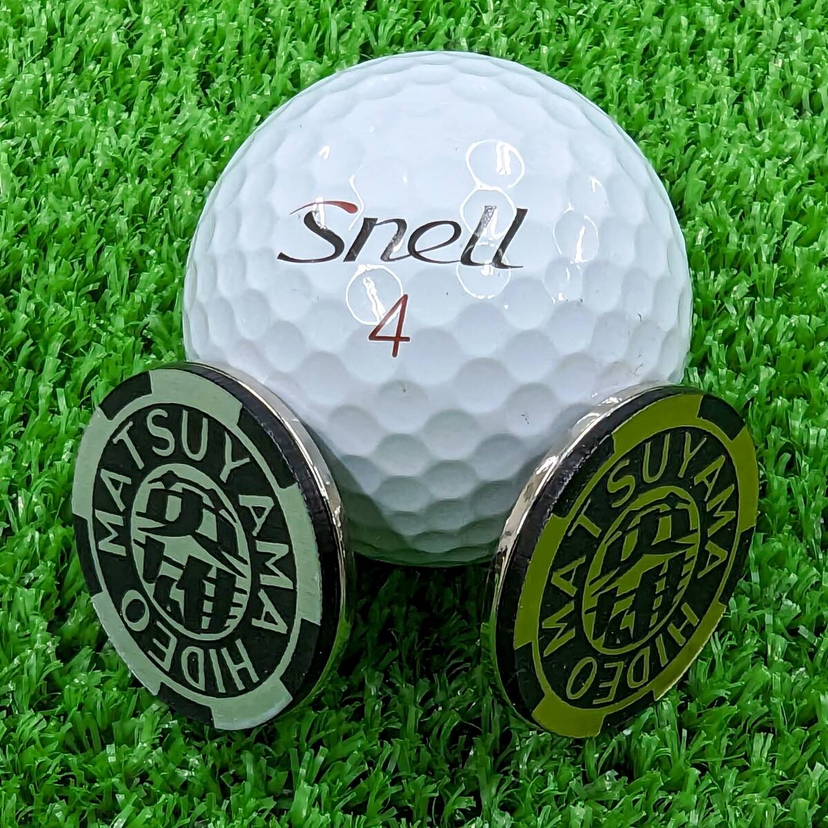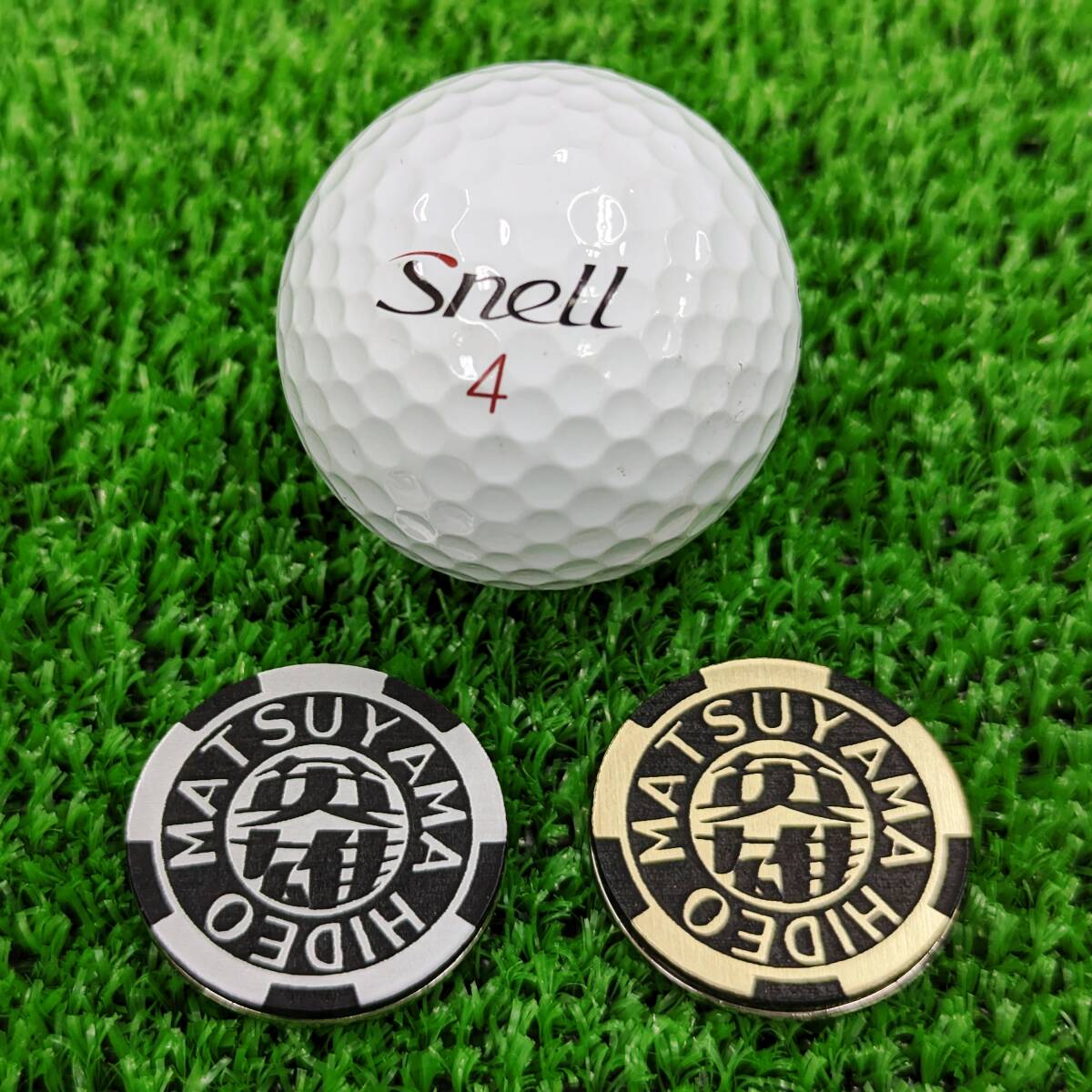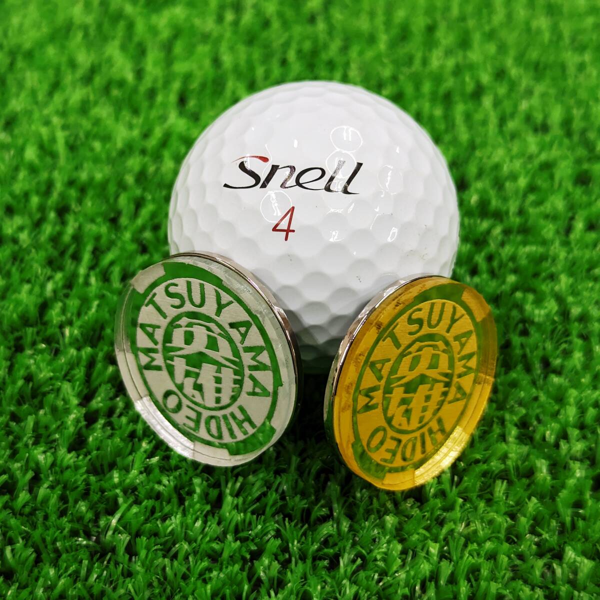 カジノチップマーカー風のデザインにフルネームやニックネームのローマ字で囲い、中心には漢字やひらがななどお好みのデザインをお選びいただける、世界に一つだけの完全オリジナルゴルフマーカーです。