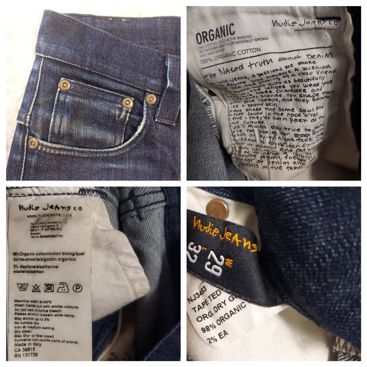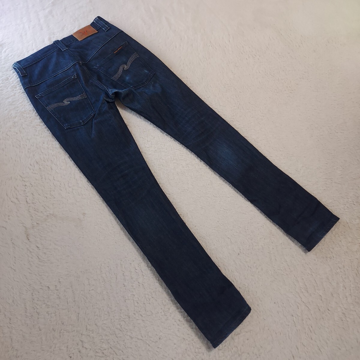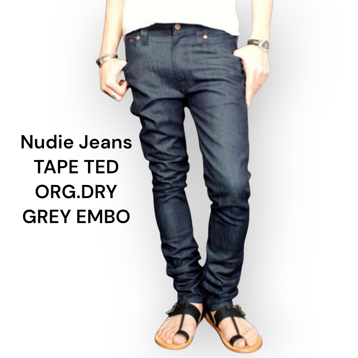 ヌーディージーンズが展開するキャロットシルエット『テープテッド』やや深めの股上、裾にかけてテイパードしたスキニーフィットです。バックポケットの位置が低く設定され、ジャストサイズでも自然な腰履きスタイルに見えます。ご紹介のこちらはブランドの定番カラー『オーガニックドライ』です。 10.75オンスのトルコ産オーガニックストレッチ生地を使用。光沢感のある未洗いのリジットデニムです。ジッパーフライ。バックポケットのヌーディーステッチはグレーです。